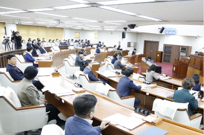 서울 양천구의회는 지난 10월 24일 제315회 임시회 제2차 본회의를 열고, 조례안·동의안 및 의장 불신임안을 포함한 총 37건의 안건을 심의·의결했다. 이날 오전 본회의는 사무국장의 보고를 시작으로 진행됐으며, 각 상임위원회의 심사 결과 보고 후 지역 현안과 관련된 조례안 및 각종 동의안이 차례로 처리됐다. 안건 처리가 끝난 뒤, 정택진 의원은 5분 자유발언을 통해 양천구 대표 상업지구인 오목교 상권의 활성화 방안을 제안했다. 정 의원은 노후화된 오목경로당의 이전과 부지 재활용을 통해 상권과 조화를 이루는 개발이 필요하다며, 어르신들의 안전을 보장하면서 지역경제 발전을 이끌 수 있는 합리적 대안을 마련해야 한다고 강조했다. 상정된 37건의 안건 중 의원 발의 조례안은 ▲서울특별시 양천구 평생교육 발전을 위한 대학과의 협력에 관한 조례안(오해정 의원) ▲서울특별시 양천구 위생해충 구제 및 대발생 곤충 관리 방안에 관한 조례안(황민철 의원) ▲서울특별시 양천구 자치경찰사무 지원 조례안(김광성 의원) ▲서울특별시 양천구 인공지능 기본조례안(유영주 의원) ▲서울특별시 양천구 직장 내 괴롭힘 금지에 관한 조례 전부개정조례안(유영주 의원) ▲서울특별시 양천구 안전보안관 운영 조례안(정택진 의원) ▲서울특별시 양천구 장애인·노인·임산부 등을 위한 공중이용시설 경사로 설치 지원 조례안(이재식·임준희 의원) ▲서울특별시 양천구 장애인 친화 이·미용시설 설치 및 지원에 관한 조례안(김수진 의원) ▲서울특별시 양천구 지역 돌봄 통합지원에 관한 조례안(임준희 의원) ▲서울특별시 양천구 저에너지 친환경 공동주택 인증에 관한 조례안(정택진 의원) ▲서울특별시 양천구 주차장 설치 및 관리 조례 일부개정조례안(곽고은 의원) ▲서울특별시 양천구 병역명문가 예우에 관한 조례 일부개정조례안(황민철 의원) ▲서울특별시 양천구 공중화장실 설치 및 관리 조례 일부개정조례안(김광성·임정옥 의원) ▲서울특별시 양천구 지역아동센터 운영 및 지원에 관한 조례 일부개정조례안(이수옥 의원) 총 14건이다. 한편, 오후 속개된 본회의에서는 `의장 윤인숙에 대한 불신임의 건`이 상정되어, 지방자치법 제74조에 따라 무기명 투표로 진행됐으며 재적 의원 과반수 찬성으로 가결됐다. 양천구의회는 의장 공백으로 인한 의회 운영 차질이 없도록 신속한 후속 조치와 긴밀한 협의를 통해 구민을 위한 의정활동에 만전을 기할 계획이다.