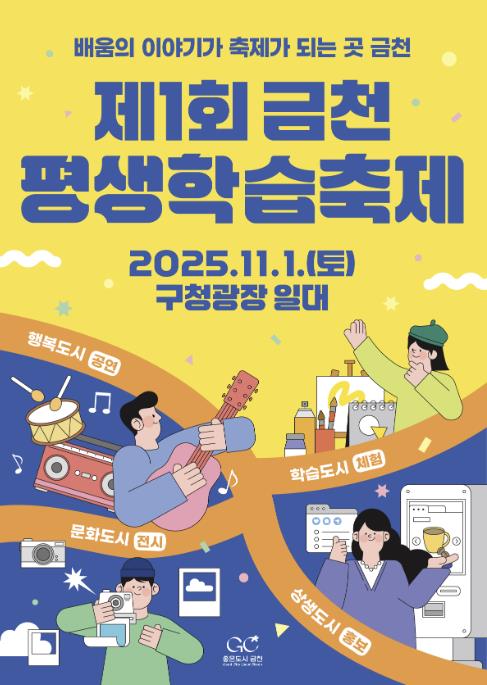 금천구는 11월 1일 오전10시 금천구청 광장 일대에서 ‘제1회 금천평생학습축제’를 개최한다고 밝혔다.축제는 ‘배움의 이야기가 축제가 되는 곳, 금천’을 주제로, 구 개청 30주년과 평생학습도시 지정 12주년을 기념해 마련됐다. 학습자, 동아리, 기관과 단체가 함께 어우러져 그동안의 학습 성과를 나누고 주민이 즐길 수 있는 학습문화 축제다.축제 공간은 금천구 도시브랜드인 ‘행복도시, 학습도시, 문화도시, 상생도시’ 4개 구역으로 나뉘어, 공연·체험·전시·홍보 등 51개 프로그램이 운영된다. 관람객들은 각 도시를 여행하듯 공간을 이동하며 다양한 프로그램을 체험하고, 스탬프를 모으면 학습 이벤트 참여 기회를 얻을 수 있다.주 무대인 썬큰광장에서는 시흥3동 주민자치 프로그램 ‘신바람 노래교실’의 축하공연을 시작으로, 금천시민대학과 평생학습 동아리들의 공연이 이어진다. 오후 1시 개막식에는 금천시민대학 ‘바른 자세와 모델워킹’ 수료생들의 특별 공연과 브라스 밴드 무대가 펼쳐져 현장을 더욱 빛낼 예정이다.구청 광장에서는 인공지능(AI) 면접 체험, 디지털 그림그리기(페인팅), 나만의 색(퍼스널 컬러) 찾기, 보드게임 체험 등 학습과 재미를 결합한 프로그램들이 운영된다. 또한, ‘작은 정원 꾸미기’, ‘인공지능(AI) 인생네컷’, ‘우리가 그리는 금나래’ 등 8개의 학습 이벤트 부스도 운영돼 참여형 즐길거리가 풍성하게 마련됐다.구청 1층 로비에서는 10월 31일부터 금천시민대학 학습자의 ‘빛과 구도로 떠나는 사진여행’과 성인문해 시화전 수상작 등이 전시된다. 이후 11월 4일부터 10일까지는 금천평생학습관 독산에서 릴레이 전시가 이어진다.유성훈 금천구청장은 “올해 금천구 개청 30주년, 평생학습도시 12주년을 맞이하여 학습자, 동아리, 평생학습기관이 모두 모여 학습의 결과를 지역과 함께 나누는 축제의 장을 열었다” 며 지속가능한 평생학습 문화를 확산하고 소통과 연계를 활성화하기 위해 노력하겠다”라고 말했다.