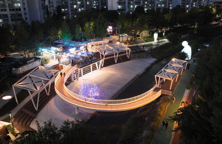 도심 속 산책로와 자전거길로 주로 이용되던 노원구 당현천 주변이 불암산을 바라보며 공연을 즐기고, 시민 누구나 여유롭게 머물며 휴식을 취하는 ‘복합문화공간’으로 재탄생했다. 서울시는 당현천의 새로운 랜드마크인 수변문화쉼터 ‘당현마루(노원구 상계동 759-1 일대)’ 조성을 마치고 이달 30일 개장 행사를 개최했다고 밝혔다. 이번에 조성된 ‘당현마루’는 서울 시내 334㎞ 지천을 활용해 일상에서 자연과 여유를 느끼는 공간으로 변화시키는 ‘서울형 수변감성도시 프로젝트’ 14번째 결과물이다. 앞서 개장한 서대문구 홍제천 ‘카페폭포’(2023년), 관악구 도림천 ‘공유형 수변테라스’(2024년) 등이 시민들의 큰 호응을 얻었으며, ‘1자치구 1수변활력거점’ 조성을 목표로, 올해 말까지 ▴은평구 구파발천 ▴송파구 장지천 ▴서초구 여의천 등 3곳을 추가로 완공할 계획이다. 수변문화쉼터 ‘당현천 당현마루’의 디자인 콘셉트는 ‘자연과 커뮤니티의 조화’다. 우선 하천 때문에 왕래가 적었던 중계동과 상계동을 달빛 브릿지로 이어 지역주민들이 언제든 오갈 수 있는 커뮤니티 공간이자, 다채로운 문화 활동을 즐길 수 있는 장으로 조성했다. 공간 곳곳에서도 다양한 매력이 찾을 수 있다. 우선 하천 둔치에는 바닥분수를 즐길 수 있으며 제방 사면부에는 하천과 바닥분수를 조망할 수 있는 수변스탠드를 만들어 시민 편의도 높였다. 또 2층 높이의 수변전망대(2층)와 연결 교량인 달빛브릿지를 설치해 당현천 ‘물멍’과 불암산 절경을 조망할 수 있도록 했다. 전망대 옆에는 테이크아웃 카페와 라면존도 운영해 주민들은 물론 국내외 관광객들의 발길도 이끌 것으로 기대하고 있다. 특히 수변 전망대 난간에는 미디어글라스를 설치, 미디어아트 연출을 통해 볼거리를 제공하고, 동시에 재난, 기상 상황 발생시 주민알림판 역할도 할 것으로 보고 있다. 폭 2.5m, 길이 45.7m의 초승달 모양 ‘달빛 브릿지’는 다리를 건너면서 당현천의 아름다움을 만끽할 수 있다. 현재 ‘당현천 당현마루’에서는 다음 달 16일까지 ‘노원달빛산책:모두의달’ 행사가 진행 중이며, 앞으로도 시민들의 수요에 맞는 다채로운 문화 행사를 지속적으로 선보일 예정이다. 한편 당현천 당현마루 개장식은 30일 오후 1시 30분 오세훈 서울시장과 오승록 노원구청장, 우원식 국회의장 등이 참석한 가운데 개최됐다. 오세훈 서울시장은 “물길은 도시의 혈관으로, 물이 건강하게 흐를 때 시민들이 활력있는 일상을 누릴 수 있다”라며 “도시의 경쟁력이자 시민행복과 이어지는 한강과 지천마다 감성을 입혀 시민들이 머물고 싶은 공간으로 정성껏 바꿔 나가겠다”라고 말했다.