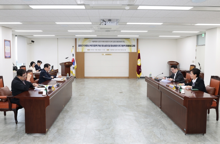 금천구의회 의원연구단체 ‘금천고령친화연구회’(대표의원 장규권)는 지난 10월 29일, ‘금천구 어르신 복지정책 개선 및 삶의 질 향상 방안 연구’용역에 대한 최종보고회를 개최했다. 이날 보고회는 연구단체 소속 의원인 장규권・고영찬・정순기・윤영희 의원을 비롯해 이인식 의장과 금천구청 관련 부서 직원 등 관계자들이 함께 참석해 연구 결과를 공유했다. 이번 연구는 지난 4월 착수보고회를 시작으로 약 7개월간 진행됐으며, 금천구 어르신의 존엄하고 행복한 노후 실현을 목표로 복지정책을 개선하고, 삶의 질을 높이기 위한 방안을 모색했다. 특히 연구단은 설문조사와 심층 인터뷰(FGI) 등을 통해 금천구 어르신들의 실제 복지 욕구를 파악하고, 현행 복지정책의 문제점을 분석하여 지역 실정에 맞는 현실적이고 실행 가능한 대안을 제시했다. 연구 결과를 바탕으로 `금천형 어르신 복지정책 및 삶의 질 향상 종합모델`을 제안하며 다음과 같은 주요 정책 방향을 담았다. ▲통합돌봄 서비스 강화 ▲어르신 건강 증진 및 예방관리 확대 ▲주거환경 개선 및 주거복지 지원 강화 ▲복지서비스 인지도 및 접근성 제고 ▲디지털 포용 및 접근성 확대 ▲노인복지 관련 조례 제・개정 추진 연구용역 결과 발표 후, 의원과 연구진, 구청 관계자들이 함께 금천구 어르신 복지정책의 현황과 개선 과제를 중심으로 정책 실현을 위한 구체적인 실행 방안에 대해 심도 있는 논의를 이어갔다. 금천고령친화연구회 의원들은 향후 이번 연구 결과를 토대로 데이터 기반의 전문 입법 활동을 강화하고, 주민이 체감할 수 있는 복지정책 추진에 더욱 박차를 가할 계획이다. 이인식 의장은 “이번 연구를 통해 금천구만의 특색 있는 복지정책이 발굴되고, 혁신적이고 실효성 있는 아이디어가 실제 사업으로 이어지는 선순환 구조가 만들어지길 기대한다”며, “의회에서도 정책 제안이 신속하고 효율적으로 실행될 수 있도록 적극 지원하겠다”고 밝혔다. 장규권 대표의원은 “현장 중심의 연구 활동을 통해 어르신들의 생생한 목소리를 직접 들을 수 있었고, 단순한 돌봄을 넘어 ‘존중・자립・세대 공존’으로 나아가야 함을 다시 확인했다”며, “앞으로도 실질적인 복지정책이 입법을 통해 실현될 수 있도록 최선을 다하겠다”고 말했다. 한편, ‘금천고령친화연구회’의원들은 ▲복지 현황 조사 및 현장 방문 ▲관련 문헌 및 선행연구 검토 ▲국내외 우수사례 분석 ▲담당 공무원 인터뷰 등을 통해 연구를 진행해 왔다. 이번 연구 결과는 향후 금천구의회의 입법 및 정책 역량 강화와 고령친화도시 실현을 위한 정책 추진 기반으로 활용될 예정이다.