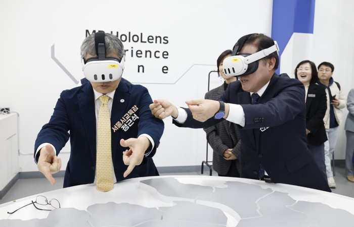 진교훈 서울 강서구청장이 1일 마곡광장에 위치한 4차산업 혁신기술 체험센터 ‘서울퓨처랩’을 방문했다.진 구청장은 정근식 서울시교육감과 함께 가상 공간에서 건물과 물건을 자유자재로 배치해 보는 ‘MR(혼합현실) 홀로렌즈’, 드론비행 등을 체험했다.또, AI와 로봇, 메타버스, 드론 등 4차산업 시대를 이끌어갈 첨단기술이 접목된 체험 프로그램을 살펴봤다.서울퓨처랩은 혁신기술, 메타버스, AI융합 등 3개 체험관을 갖췄다. 이곳에서 인공지능 기반 방탈출게임, 로봇코딩·스포츠, 드론 비행 등 다양한 미래기술을 직접 체험할 수 있다. 진교훈 구청장은 “마곡지구에는 AI와 디지털 분야 등 4차산업을 선도하는 기업들이 밀집해 있다”며 “마곡지구 기업들과 학생들을 연계한 4차산업 프로그램을 적극 운영해 미래 인재를 육성하는 데 역량을 집중하겠다”고 말했다.