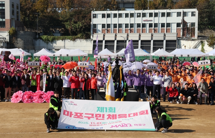 높고 청명한 가을 하늘 아래, 11월 1일 오전 망원유수지 체육공원에서 ‘제1회 마포구민 체육대회’가 열렸다.마포구체육회가 주최, 주관하고 마포구가 후원한 이번 체육대회는 구민의 건강 증진과 지역 공동체의 화합을 도모하는 동시에 세대 간 이해와 교류를 촉진하기 위해 마련됐다.이날 현장에는 16개 동에서 모인 주민 등 1000여 명이 체육공원을 뜨거운 열기로 가득 채웠다.체육대회는 서강대학교 응원단 트라이파시 공연과 마포구태권도시범단의 무대로 화려하게 막을 열었다.이후 동별 입장 퍼레이드가 열려 개성 넘치는 응원과 퍼포먼스로 참여자들의 환호를 이끌어냈다.오전 11시부터는 본격적인 경기가 시작됐다. 대회에서는 파크골프, 4인 족구, 7인 승부차기가 열렸다.또한 줄다리기와 애드벌룬 굴리기, 계주 달리기 등 세대가 함께 어우러진 화합의 경기가 펼쳐져, 운동장 곳곳에 웃음과 따뜻한 온기가 가득했다.대회에 참여한 주민들은 참여 이웃과 함께 웃고 즐기며 공동체 의식을 다지는 뜻깊은 시간을 보냈다.박강수 마포구청장은 “이번 대회는 단순한 체육 행사가 아닌 마포구민 모두가 함께 어울리는 진정한 화합의 장”이라며 “승패보다는 참여와 화합에 의미를 두시고 끝까지 안전하게 함께해주시길 바란다”라고 말했다.