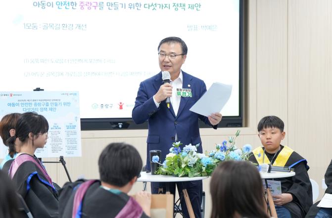 중랑구는 10월 31일 구청 기획상황실에서 ‘제2기 중랑구 아동정책참여단 정책제안 발표회 및 수료식’을 열었다.‘중랑구 아동정책참여단’은 아동이 직접 아동권리 실태를 점검하고 정책을 제안하는 참여기구로, 올해는 ‘생활안전’을 주제로 6개월간 운영됐다. 구는 국제아동권리 NGO 세이브더칠드런 서울지역본부와 협업해, 아동들이 지역내 시설을 답사하고 정책 모니터링, 아동권리 캠페인 등 다양한 활동에 참여할 수 있도록 지원했다.발표회에서는 참여단이 모둠별로 제안한 정책 아이디어를 공유하고 구에 직접 전달했다. 아동들은 ▲골목길 환경 개선 ▲안전한 등하굣길 조성 ▲학교 주변 흡연 규제 등 생활안전과 관련된 지역 문제를 아동의 시각에서 발굴하고, 구체적인 개선책을 제시했다.구청장은 각 제안에 직접 답변하며, 골목길 정비와 보안등 설치, 바닥 신호등 확대 등 실제 조치 현황을 설명했다. 어린이보호구역 표시 재정비, 학교 앞 흡연 단속 강화, 신호등 점검 체계도 안내하며, 아동의 제안이 정책에 반영되고 있음을 강조했다.중랑구는 지난 6월 유니세프 한국위원회로부터 ‘아동친화도시’ 인증을 받은 이후, 아동정책참여단을 비롯해 아동권리대변인 제도, 아동권리교육 활성화 등 아동의 참여권을 보장하는 다양한 정책을 지속적으로 추진하고 있다. 이번 제안 발표는 정책 형성 과정에 아동이 주체적으로 참여한 실천 사례로, 아동친화도시로서의 책임과 가치를 실현해 나가는 구의 노력을 보여준다.류경기 중랑구청장은 “아동과 함께 지역사회의 정책을 만들어가는 것이 바로 아동친화도시의 핵심”이라며 “여러분의 목소리가 중랑구의 정책으로 이어질 수 있도록 계속해서 귀 기울이겠다”고 말했다.