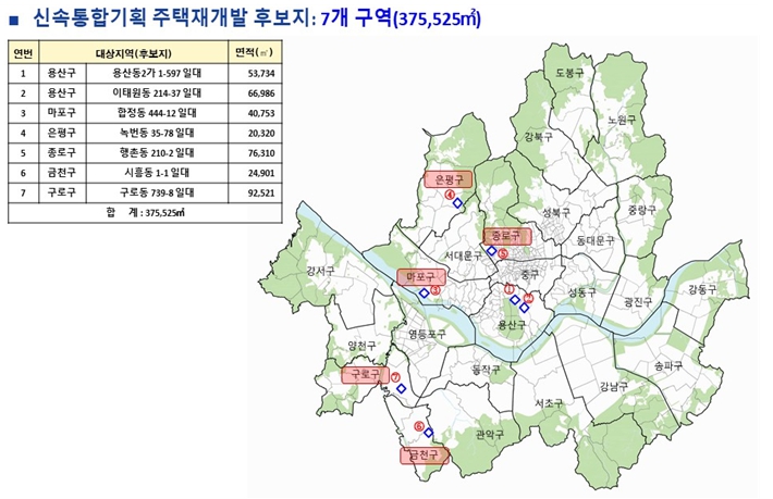 서울시는 신속통합기획 주택재개발 후보지로 선정된 7개 구역(총 0.38㎢)을 신규 토지거래허가구역으로 동시 지정해 투기성 토지거래를 원천 차단하고 정비사업의 투명성을 강화한다. 서울시는 11월 3일 제11차 도시계획위원회 수권분과위원회에서 제5차 후보지 선정위원회를 통해 선정된 신통기획 주택재개발 후보지에 대해 토지거래허가구역 지정을 의결했다고 밝혔다. 이번 조치는 후보지 선정과 토지거래허가구역 지정 절차를 동시에 진행해 공고까지의 시차를 최소화한 것이다. 지정기간은 2025년 11월 11일부터 2027년 1월 28일까지다. 신규 지정 대상은 용산구 2곳, 마포구 1곳, 은평구 1곳, 금천구 1곳, 구로구 1곳, 종로구 1곳으로 총 7개 구역이다. 종로구 행촌동 210-2 일대 외 6개소(총 0.38㎢)이며, 효율적인 구역 관리를 위해 기존 신속통합기획 주택재개발 선정 구역과 동일한 만료 기간으로 설정했다. 아울러 기존 신속통합기획 주택재개발 선정지 1곳은 사업구역 결정 경계에 맞춰 토지거래허가구역 경계를 조정했다. 대상지는 마포구 공덕동 11-24 일대(0.08㎢)이며, 허가대상 면적 및 지정기간은 기존과 동일하게 유지된다. 서울시는 지정기간 만료 시점인 2026년 1월 28일 전에 재지정 필요성을 검토할 계획이다. 토지거래허가구역으로 지정되면 주거지역 6㎡, 상업지역 15㎡를 초과하는 토지 지분에 대한 소유권이나 지상권 이전 및 설정 계약 시 관할 구청장의 허가를 반드시 받아야 한다. 최진석 서울시 주택실장은 “이번 신통기획 후보지 선정과 토지거래허가구역 지정 두 절차를 동시에 진행해 단기 투기 우려까지 해소하겠다.”며 “앞으로도 효율적인 토지거래허가구역 지정·조정으로 부동산 시장 안정화와 원활한 정비사업 추진에 최선을 다하겠다.”고 말했다.