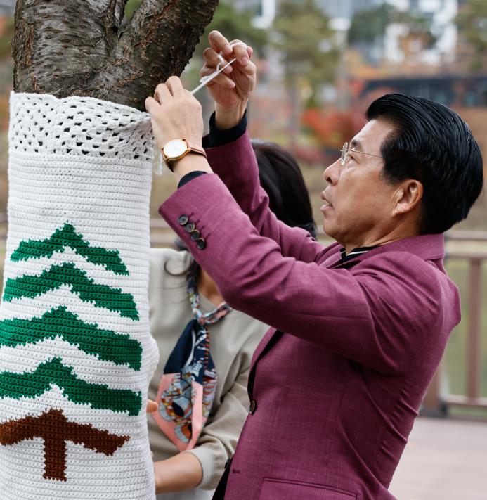 서울 송파구가 오는 11월 8일 오후 2시 위례호수공원에서 `제4회 위례 트리니팅` 행사를 개최한다. 나무에 따뜻한 뜨개옷을 입혀주는 특별한 행사다.`트리니팅(Tree-Knitting)`은 주민들이 직접 짠 뜨개옷을 나무에 입혀 추운 겨울을 함께 나는 활동이다. 2022년부터 이어져 온 위례동의 대표적인 주민 공동체 사업으로 자리 잡았다.올해는 ‘정직, 배려, 포용’을 주제로 학교 폭력과 차별, 편견으로 상처받은 어린이들의 마음을 위로하고 정직함과 도덕성을 키워가는 메시지를 담았다.지난 8월부터 약 석 달간 60여 명의 주민 봉사단이 매주 두 시간씩 모여 뜨개 작품을 완성했다. 이들이 만든 다채로운 뜨개옷은 위례호수공원 산책로를 따라 나무 132그루에 설치돼 겨울을 앞둔 공원에 따뜻한 색감과 이야기를 더한다.이번 전시에는 그림책 속 장면을 뜨개옷으로 재현한 작품, 달과 별, 클로버 등 포용과 배려의 의미를 담은 디자인, 그리고 젊은 세대의 성장과 도전을 표현한 트리니팅 등 다양한 작품이 어우러져 관람객에게 따뜻한 메시지와 즐거움을 선사한다. 특별히 올해는 가족 단위 참여가 눈에 띈다. 식전 공연에서는 아이와 부모가 함께 동요를 부르고 춤을 추는 무대가 펼쳐지며, ‘어린이 도슨트’로 나선 여섯 가족은 직접 작품을 소개하며 행사의 의미를 나눈다. 참여자 모두가 함께 작품을 둘러보며 나무마다 깃든 이야기를 공유한다.위례호수공원에 전시된 트리니팅 작품은 2026년 3월 초까지 볼 수 있다.행사 당일 위례호수공원에서는 ‘북적북적 로스쿨 그림 전시회’도 함께 열린다. 올해 5월부터 10월까지 위례동 어린이 315명이 ‘법’을 주제로 한 동화책을 읽고, ‘법과 정직’의 의미를 그림으로 표현했다. 이 가운데 선정된 48개 작품이 전시되며 아이들 시선으로 담아낸 ‘정직한 마을 만들기’ 메시지가 관람객에게 따뜻한 울림을 전할 예정이다.서강석 송파구청장은 “트리니팅은 주민이 직접 참여해 만든 따뜻한 공동체 예술”이라며 “앞으로도 세대가 함께 어우러지는 지역 프로그램을 다양하게 이어가겠다”라고 말했다.
