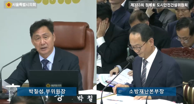 서울특별시의회 도시안전건설위원회에서 부위원장으로 의정활동 하고 있는 박칠성 시의원(더불어민주당, 구로4)은 지난 5일 열린 서울특별시의회 제333회 정례회 도시안전건설위원회 소관 소방재난본부 행정사무감사에서 화재안전 사각지대의 문제점을 지적하고 실효성 있는 대책 마련을 촉구했다. 박 의원은 먼저 최근 서울 소공동 서울센터빌딩 화재 사례를 언급하며 건설현장 비상경보장치의 층간 연동 문제를 지적했다. 현행 법령상 건설현장의 비상경보장치는 층간 연동이 법적 의무사항이 아니어서, 화재 발생 시 다른 층의 근무자들이 대피 시기를 놓칠 위험이 상존한다는 것이다. 이에 박 의원은 “서울시 차원의 행정지침 마련은 물론, 소방청에 층간 연동 기준을 명문화하는 제도개선을 건의해야 한다”고 강조했다. 또한 “2025년 현재 공사현장 화재로 인한 재산피해액이 약 15억 5천만 원으로 2023년과 2024년 전체 피해액을 합친 것보다 많다”며 “형식적인 안전교육이나 시정조치에 그치지 말고 실질적인 책임을 묻는 강력한 행정처분이 필요하다”고 주문했다. 이어 박 의원은 주택용 소방시설 무상 보급 사업의 저조한 실적을 지적했는데 “서울시 취약계층 116만 가구 중 지난 15년간 단 30만 가구에만 보급해 보급률이 26%에 불과하다”며 “단순 보급 실적이 아니라 설치 효과 검증 체계를 마련하고, 실질적 확대 전략이 필요하다”고 강조했다. 마지막으로 박 의원은 전통시장 AI 화재순찰로봇의 실효성 문제를 제기했다. 시범운영 결과에 따르면 총 1,279건의 고온감지 경보 중 대부분이 자동차 머플러, 전구, 담뱃불 등 실제 화재 위험과 연관성이 적은 사례였다는 것이다. 박 의원은 “잦은 오경보로 상인들의 피로도가 누적되고 시스템 신뢰도가 저하될 수 있다”고 우려를 나타냈다. 박 의원은 “이 사업이 기술 실증 단계를 넘어 정책사업으로 확대되기 위해서는 화재 예방률, 경보 정확도 등 객관적 성과지표 마련이 선행되어야 한다”며 “시민이 체감할 수 있는 실효성 있는 화재안전 대책을 적극 추진해 달라고”고 당부했다.