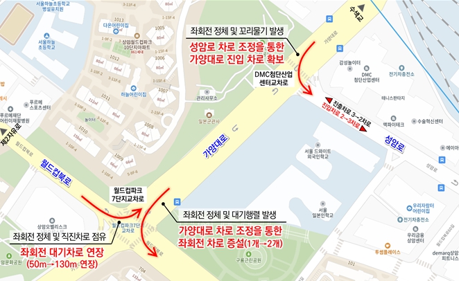 교차로 꼬리물기와 정체가 반복됐던 가양대로(월드컵파크7단지 교차로 ~DMC첨단산업센터 교차로)에 좌회전 차로가 추가되고, 교통량이 많아 좌회전 대기차량이 직진차로까지 점유했던 올림픽선수기자촌아파트 교차로·중앙대병원입구 교차로는 대기차로 연장을 늘린다. 또 중계역 교차로·서빙고동주민센터 교차로 등 도로 기하구조도 개선된다. 서울시는 이달 말까지 시내 총 9곳을 대상으로 교통 정체 개선, 교통안전 확보, 불합리한 교통체계 정비 등 ‘도로교통 소통개선 사업’을 추진한다고 밝혔다. 대상지에는 차로 증설, 대기차로 연장, 차로 운영 개선 등 교통 흐름 향상을 위한 사업이 이뤄진다. 시는 대규모 예산과 장기간 공사가 필요한 도로 신설이나 확장 대신 차로 운영 변경, 신호 조정 등 비교적 적은 예산으로 교통 효율과 시민 만족도를 극대화할 수 있는 위치를 선정해 매년 도로교통 소통개선 사업을 추진하고 있다. 주로 신도시 개발 등으로 인한 서울시계 주변 교통량 변화를 반영해 차로 추가 확보, 대기차로 연장 등 교통 정체를 개선하거나 이중정지선 삭제, 철도건널목 주변 정비 등으로 교통안전을 확보하고 불합리한 교통체계를 정비하고 있다. 특히 출퇴근 시간대 교통량이 집중되는 현장 실태를 분석, 병목현상 지점의 차로 운영을 개선하는 등 실질적인 개선을 추진 중이다. 먼저 고양향동지구·덕은지구 등 입주로 교통량이 늘어난 ‘가양대로 축(월드컵파크7단지 교차로~DMC첨단산업센터 교차로)’을 개선한다. 기존 1개였던 좌회전 차로 수를 2개로 늘리고, 대기차로 길이도 50m→130m로 연장해 교차로 꼬리물기와 정체를 해소한다. 올림픽선수기자촌아파트 교차로(송파구), 중앙대병원입구 교차로(동작구)와 같이 평소 좌회전 교통량이 많아 차량이 직진차로까지 점유하면서 상습 정체가 발생하는 지점은 대기차로를 연장한다. 특히 위례성대로(올림픽선수기자촌아파트 교차로)는 하남감일지구 등 주변 지역에서 서울로 진입하려는 좌회전 대기행렬로 몸살을 앓아온 지점으로, 좌회전 차로를 연장하게 되면 교통 흐름이 한결 원활해질 것으로 기대된다. 또한 중계역 교차로(노원구), 서빙고동주민센터 교차로(용산구) 등 도로 기하구조로 신호위반 신고, 불편 민원이 잦거나 사고 등 우려가 있다고 판단되는 지점은 불합리한 교통체계를 개선하고 안전 확보를 위한 공사를 진행 중이다. 실제로 중계역 교차로는 모퉁이에 중계역(7호선) 출입구가 있어 이중정지선, 전·후방 신호등으로 운전자 혼란이 있을 뿐 아니라 신호위반 신고도 수시로 발생했다. 시는 이런 불편을 개선하기 위해 모퉁이 보도를 확장, 보행자 대기 공간을 확보하고 횡단보도를 옮겨 보행자와 운전자 안전 및 편의를 동시에 높인다는 방침이다. 서울시는 이번에 교통운영 체계를 개선 9개 지점은 지속적으로 모니터링하는 한편 시내 전반의 교통 흐름 개선 및 불합리한 교통체계 개선이 필요한 곳을 발굴, 추진한다는 계획이다. 시는 이번 ‘도로교통 소통개선 사업’에 앞서 관계기관과 함께 현장 조사·도로 여건을 면밀히 검토, 시민 불편을 최소화하고 도로 흐름을 효율적으로 개선하기 위한 방안을 마련했다. 김상신 서울시 교통운영과장은 “도로교통 소통 개선은 단순히 교통 정체를 완화할 뿐 아니라 시민 안전과도 직결되는 만큼 구간별 맞춤형 개선을 통해 시민이 체감하는 현장 중심의 도로 개선을 적극 추진해 나가겠다”라고 밝혔다.