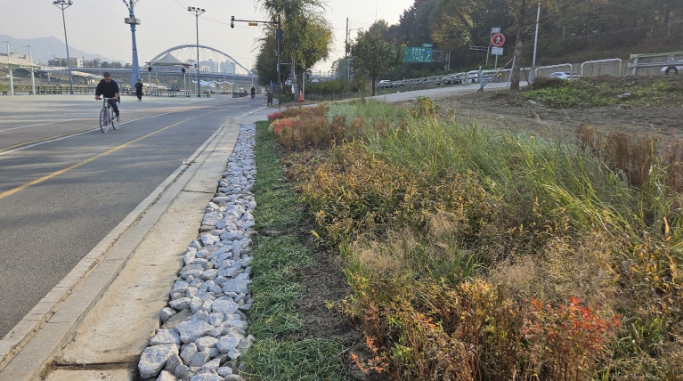 서울 동대문구는 중랑천 이화교 일대 2,000㎡ 규모 공간에 ‘중랑천 그라스원’ 조성을 완료했다고 밝혔다. 해당 구간은 우천 시 토사 유출과 미관 저해 문제가 반복되던 곳으로, 구는 지난 10월 말 정비를 마치고 자연과 조화를 이루는 녹색 휴식공간으로 재탄생시켰다.이번 사업은 행정안전부 특별교부세를 활용해 추진됐다. 중랑천 제방부에는 뿌리 활착력이 뛰어난 그라스류를 집중 식재해 토사유출을 근본적으로 막는 동시에, 둔치의 안정성과 경관미를 함께 확보했다.특히 중랑천 피크닉장에는 ‘포켓형 그라스원(Pocket Grass Garden)’을 도입했다. 사초 ‘백록담’, ‘실버셉터’, 수크령 ‘파운틴그라스’, ‘비리데센스’, 억새 ‘퍼플러브그라스’, ‘퍼플폴’ 등 이색적인 그라스류 16종 1만 5천여 본을 소규모 군락으로 식재해 자연스러운 초지 경관을 조성했다.식재된 그라스류는 잡초에 강한 다년생 식물로, 계절마다 서로 다른 색감을 선보이며 사계절 감상 요소를 제공한다. 아울러 피크닉장 내 그늘목 식재도 병행해 여름철에도 주민들이 쾌적하게 머물 수 있는 그늘쉼터 공간을 확충했다.이필형 동대문구청장은 “이번 조성사업으로 중랑천변의 토사유출을 예방하는 동시에 주민들이 사계절 자연 속에서 편안히 휴식할 수 있는 녹색쉼터를 마련했다”며 “앞으로도 생태와 휴식이 공존하는 수변공간으로 꾸준히 가꿔나가겠다”고 말했다.