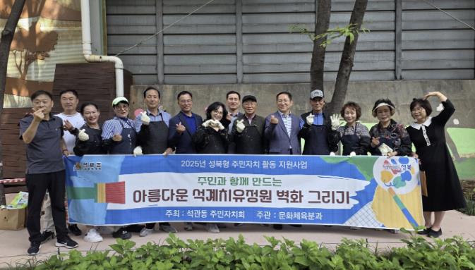 서울 성북구 석관동 주민자치회 문화체육분과가 지난 14일 석계치유정원 옆 철도길 벽면에 벽화그리기를 완료하며 삭막했던 공간을 힐링 공간으로 재탄생시켰다고 밝혔다.벽화그리기 사업은 지난해 열린 제5회 주민총회에서 의결된 사업으로, 당초 ‘석계역 지하보차도’가 대상지였으나 공간개선사업이 진행되면서 석계치유정원 옆 철도길 벽면으로 계획을 변경해 추진했다.이번 벽화 작업에는 약 100여 명의 주민과 자원봉사자가 참여했다. 작업은 ‘일상과 계절이 어우러진 석관동, 걷고 싶은 사계의 길’을 주제로 진행됐으며, 석관동의 일상 풍경과 사계절의 모습을 벽화로 표현했다. 또한 성북구의 상징물인 감나무, 진달래, 참새가 벽화 속에 함께 담겨 조화롭게 구성됐다.정진휴 석관동 주민자치회 문화체육분과장은 동네의 변화는 주민 한 명 한 명의 작은 행동과 의식의 변화에서 시작된다고 말하며, 주민들과 함께 쾌적한 석관동을 만들기 위해 봉사할 수 있어 보람 있었다고 소감을 밝혔다.오점종 석관동 주민자치회장은 벽화 작업 중에도 주민들의 관심과 격려가 이어졌다고 전하며, 장소를 석계치유정원 옆으로 변경한 것이 오히려 전화위복이 됐다고 말했다.전영훈 석관동 동장은 주민들과 자원봉사자들의 적극적인 참여 덕분에 석관동에 힐링 공간이 조성될 수 있었다고 밝히며, 앞으로도 주민 의견을 소중히 반영해 쾌적한 생활환경을 만들기 위해 노력하겠다고 전했다.
