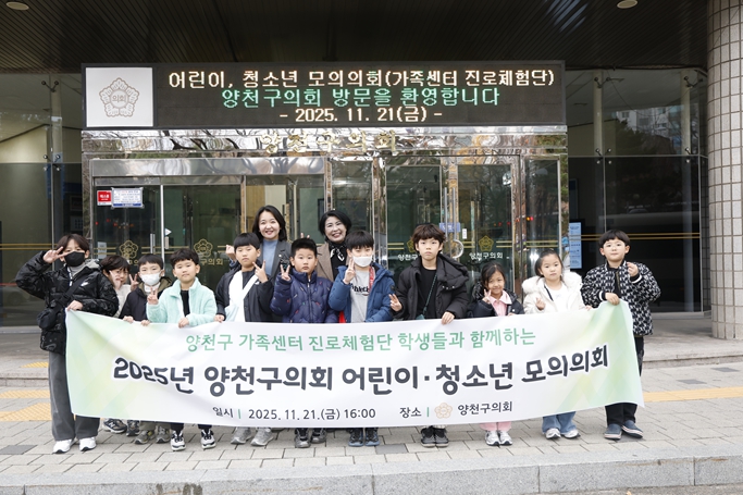 서울시 양천구의회는 11월 21일 오후, 본회의장과 상임위원회실에서 양천구 가족센터 진로체험단 소속 초등학생 14명을 대상으로 ‘2025년 어린이·청소년 모의의회’를 개최했다. 이번 모의의회는 ‘진로체험 위원회’라는 명칭으로 진행됐으며, 학생들은 안건 제출부터 상임위원회 심사, 본회의 토론과 의결에 이르기까지 지방의회의 의사진행 전 과정을 직접 경험했다. 학생들은 이날 `양천구 초등학생을 위한 스마트 놀이공간 환경 조성 방안 개선 건의안`을 상정하고 논의를 이어갔다. 건의안에는 기존 야외 놀이터가 미세먼지·폭염·장마 등 외부 환경에 취약한 현실을 개선하고, 증강현실(AR)과 센서 기술을 활용한 디지털 체험형 놀이터와 기상 상황에 구애받지 않는 실내 스마트 놀이공간을 구축해야 한다는 내용이 담겨있다. 학생들은 변화하는 환경 속에서 어린이들이 보다 안전하고 자유롭게 놀 수 있는 미래형 놀이 인프라 조성의 중요성을 강조했다. 이번 모의의회를 통해 학생들은 정책을 스스로 고민하고 제안하며, 토론과 합의를 거쳐 의결에 이르는 민주적 의사결정 과정을 몸소 체험했다. 양천구의회는 앞으로도 어린이와 청소년이 직접 의사결정 과정을 접하고 의견을 나눌 수 있는 체험 기회를 지속적으로 확대하며, 지역사회와 소통하는 열린 의회를 만들어 나갈 계획이다.