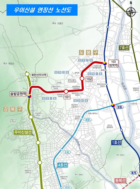서울시는 24일 오전 10시 30분, 도봉구 방학사계광장(방학동 709-1)에서 ‘우이신설 연장선 도시철도 건설공사’의 기공식을 개최했다. 이날 행사에는 오세훈 서울시장, 오언석 도봉구청장, 오기형 의원, 최호정 서울시의장을 비롯한 시의원과 지역 주민 등이 참석해 우이신설 연장선 공사의 시작을 축하했다. 우이신설 연장선은 2017년부터 운영 중인 솔밭공원역(우이신설선)과 방학역(1호선)을 연결하는 사업이다. 2032년 준공을 목표로 총 연장 3.94㎞의 정거장 3개소(방학역 환승 포함)를 신설하며, 총 사업비로 4,690억 원이 투입된다. 2010년부터 동북권 지역의 숙원 사업이었지만 장기간 추진에 진통을 겪었던 우이신설 연장선 공사를 본격적으로 시작하게 되면서, 동북권 지역에 보다 촘촘한 도시철도망 구축을 통해 시민들의 교통 편의성이 개선될 것으로 전망된다. 우이신설 연장선이 개통되면 기존 우이신설선의 신설동역(1·2호선), 보문역(6호선), 성신여대입구역(4호선)에 더해 방학역(1호선)이 새롭게 환승역으로 추가돼 동북권의 핵심 도시철도 노선으로 거듭난다. 향후 우이신설선 솔밭공원역 이후 구간은 기존의 북한산우이역 방향과 연장선 방학역 방향으로 열차가 나뉘어 운행될 계획이다. 신설되는 정거장 3개소의 도보 생활권(반경 500m) 내 생활인구는 약 10만 명으로, 시민들의 도시철도 접근성이 강화돼 주변 지역의 교통서비스가 대폭 향상된다. 또한 현재 시내버스로 약 25분(자가용 약 13분) 걸리는 솔밭공원역~방학역 구간이 약 8분 만에 이동 가능해져 시민들의 이동시간이 최대 17분까지 단축된다. 서울시는 우이신설 연장선 사업을 추진하는 데 있어 지상 구조물 최소화로 도시환경 미관 개선, 교통약자 배려 및 휴식·문화 공간 조성, 공사에 따른 주민 불편 최소화 등 세 가지 사항에 대해 중점을 두고 실시설계와 공사를 진행할 계획이다. 먼저 정거장과 환기구를 통합하는 등 불필요한 지상 구조물을 최소화해 도시 공간을 효율적으로 활용하는 동시에 도시 미관도 개선해 쾌적한 도시환경을 제공한다. 모든 역에는 교통약자의 편의를 위해 외부 엘리베이터를 설치할 뿐만 아니라 ‘장애물 없는 생활환경(BF, Barrier Free)’ 인증 설계를 도입한다. 시민들이 일상에서 휴식과 문화를 즐길 수 있도록 역사 내에는 다양한 미술 장식품을 설치하고, 생태조경 공간을 조성한다. 더불어 시민들의 교통 불편을 야기하는 도로 개착을 최대한 줄이고, 터널과 정거장을 병행 시공해 공사 기간을 최소화하는 등 공사 중 교통·생활 불편을 해소해 인근 지역의 안전과 주거환경 보호에 만전을 기할 예정이다. 한편 시는 우이신설 연장선이 도시철도가 닿지 않던 동북권 교통 소외 지역의 불편을 해소하고, 다시 ‘강북 전성시대’를 이끄는 균형발전의 기반을 마련할 것으로 기대하고 있다. 시는 지난해 강북권(동북권·서북권)의 노후 주거지, 상업지역에 대한 규제 완화와 파격적인 인센티브 부여로 개발을 활성화하고, 대규모 유휴부지를 첨단산업과 일자리 창출 거점으로 조성하는 강북권 대개조 의지를 밝힌 바 있다. 오세훈 서울시장은 “우이신설 연장선은 쌍문·방학·도봉 등 서울 동북권 주민들의 오랜 염원을 담은 사업으로, 단순히 교통을 이어주는 연장선이 아닌 강북의 잠재력을 깨울 중요한 열쇠”라며, “우이신설 연장선이 성공적으로 추진될 수 있도록 전폭적으로 지원하고, 시민 여러분이 ‘강북 전성시대’를 일상에서 체감하실 수 있도록 더욱 노력하겠다”라고 말했다.
