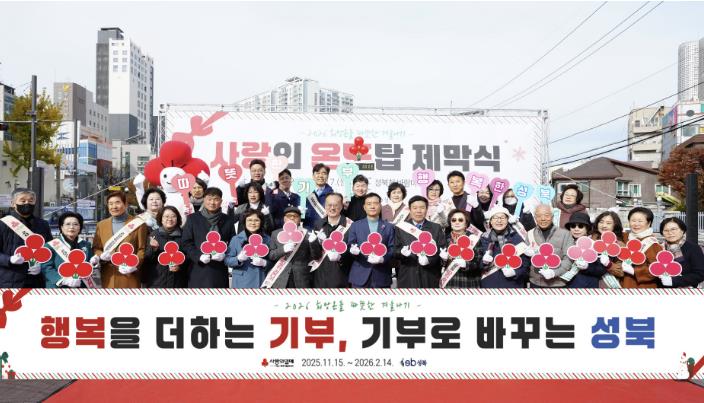 서울 성북구가 지난 17일 ‘2026 희망온돌 따뜻한 겨울나기’ 시작을 알리는 사랑의 온도탑 제막식을 개최했다. 주민과 지역 인사들이 참석해 행사가 진행됐다.행사는 1부와 2부로 나누어 진행됐다. 1부에서는 홍보대사 위촉장 전달식과 온도탑 제막식이 열렸고, 2부에서는 기부 금액별 선물 증정 이벤트가 진행됐다. 동 지역사회보장협의체 위원장 20명이 홍보대사로 위촉됐으며, 대표로 윤재성 위원장이 위촉장을 전달받았다. 지역 인사와 관내 복지관장, 홍보대사 등도 참여해 공식 행사를 마쳤다.이번 이벤트에는 엠투파크의 의류 후원과 성북구청 직장어린이집의 문구·완구 후원이 제공됐다. 카드단말기, QR코드, 성금 모금함 등 다양한 기부 방식으로 주민 참여가 이어졌으며, 모금된 300만 원은 전액 ‘따뜻한 겨울나기’ 성금으로 기탁돼 이웃 지원에 사용될 예정이다.성북구는 지난해 모금액 18억 7천만 원을 조성했으며, 올해는 19억 원을 목표로 활동을 추진한다. 구는 지역 내 나눔 문화 확산과 겨울철 주민 지원을 계속할 계획이다.