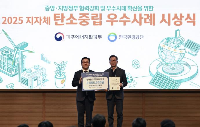 서울 은평구는 지난 17일 ‘2025 지자체 탄소중립 콘퍼런스’에서 탄소중립 이행성과 부문 우수기관으로 선정되어 한국환경공단 이사장상을 받았다고 밝혔다.이번 공모는 기후에너지환경부가 전국 광역·기초지자체를 대상으로 추진한 것으로, 총 76건의 우수사례가 접수됐다. 전문가 심사를 통해 우수기관이 선정됐으며, 지역 특성에 맞는 정책의 실효성과 주민참여 기반의 확산성을 중점 평가했다.은평구는 ‘2050 은평형 탄소중립 실천마을 만들기’ 계획에 따라 감탄행동 프로젝트 10대 과제를 추진하며 지역 맞춤형 탄소 감축 체계를 구축했다.해당 과제에는 중‧장기 탄소중립 로드맵 마련, 탄소중립 주민 거버넌스 ‘마을감탄사’ 운영, 지역 특화 기관 협업 프로그램 등이 포함돼 지속 가능한 탄소중립 기반 구축을 높이 평가받았다. 또한 탄소중립 실천과 친환경 교통 문화 확산이라는 주제로 차없는날 행사 개최와 앵봉산 가족캠핑장에서 1회용품 사용을 줄이기 위한 무료 다회용기 대여 서비스 사업 등을 우수사례로 인정받았다.김미경 은평구청장은 “이번 수상은 주민과 지역사회가 함께 만들어낸 성과”라며 “앞으로도 주민 참여 기반의 탄소중립 정책을 더욱 확대하고, 생활 속에서 실천하는 지속가능한 도시 은평을 만들어가겠다”고 밝혔다.