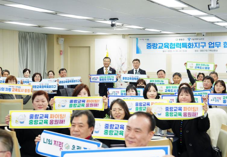 중랑구는 11월 26일 구청 4층 기획상황실에서 서울특별시교육청과 ‘중랑교육협력특화지구’업무협약을 체결했다. 이번 협약은 2019년 혁신교육지구, 2023년 미래교육지구 추진에 이어 지역 교육 협력사업을 확장하는 단계로, 구·교육청·학교 간 협력 구조를 체계화해 지역 기반 교육 환경을 강화하기 위해 마련됐다. 협약식에는 류경기 중랑구청장, 정근식 서울시교육감, 미래교육지구 운영협의체 위원, 학교장 및 학부모 등 80여 명이 참석했다. 행사는 경과보고, 교육협력특화지구 설명, 협약서 서명, 소감 발표, 의견수렴 순으로 진행됐다. 이번 협약을 통해 양 기관은 지역 특색을 반영한 교육사업 운영, 미래역량 기반 지역연계 교육 강화, 학생맞춤통합지원 체계 구축, 진로·진학 협력 확대 등 네 가지 분야에서 협력하기로 했다. 협약 기간은 2026년 1월 1일부터 1년이며, 자동으로 1년씩 연장된다. 중랑구는 지난 3년간 미래교육지구 운영을 통해 초·중등 교육과정과 연계한 체험학습, 방과후 돌봄, 청소년 자치활동, 민관학거버넌스 운영 등 4개 분야 12개 사업을 추진해 왔다. ▲우리고장 체험활동 ▲교육희망버스 ▲마을환경·식생활 교육 ▲장애이해교육 ▲중랑이음학교 ▲어린이 놀이한마당 ▲청소년 꿈축제 ▲미래교육박람회 등 다양한 프로그램을 운영하며 지역 내 학생들의 성장과 경험 확대를 지원해 왔다. 교육 인프라 확충도 속도를 내고 있다. 2021년 문을 연 방정환교육지원센터에 이어 제2방정환교육지원센터가 오는 12월 22일 개관을 앞두고 있으며, 2027년 상반기 개관을 목표로 천문과학관도 조성 중이다. 교육경쟁력 강화를 위해 교육경비보조금도 지속 확대하고 있으며, 2026년에는 160억 원 규모로 편성할 계획이다. 류경기 중랑구청장은 “중랑교육협력특화지구는 학교와 지역사회가 힘을 모아 아이들의 미래역량을 키우는 중요한 기반”이라며 “제2방정환교육지원센터 개관과 2026년 교육경비 160억 원 확대를 발판으로, 중랑의 교육 환경을 더욱 튼튼히 만들겠다. 앞으로도 학교 현장과 학부모의 목소리를 정책에 충실히 반영하겠다”고 말했다.
