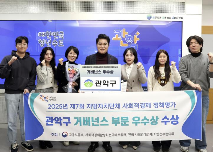 관악구가 ‘제7회 지방자치단체 사회적경제 정책평가’에서 ‘거버넌스 부문 우수상’을 수상하는 쾌거를 이루었다.해당 평가는 지방자치단체 사회적경제 정책의 수립 및 집행에 대한 평가를 통해 다양한 이해관계자들의 사회적경제 정책에 대한 이해도를 높이고, 더 발전된 정책 수립과 집행 체계를 마련하는 것을 목적으로 한다.평가는 고용노동부, 사회적경제활성화전국네트워크, 전국 사회연대경제 지방정부협의회에서 공동 주최하고, 한국사회적기업진흥원, (사)사회적경제활성화지원센터에서 후원한다.이번 평가는 전국 17개 광역자치단체 및 226개 기초지방자치단체를 대상으로 이뤄졌다. 선정은 ▲정책 기반 정비 ▲사회적경제 지원 수준 ▲사회적경제 정책의 성과 ▲사회적경제 거버넌스 수준 등 17개 지표를 기준으로 두 차례의 심사를 거쳐 진행됐다.특히, 이번 평가에서 관악구는 거버넌스 체계 구축과 협력 활성화의 성과를 인정받아 거버넌스 부문 우수상을 수상하게 됐다.구는 꿈시장 기획단 운영, 민·관 협력 회의, 사회적경제기업 대표 간담회 등을 통해 거버넌스 체계를 안정적으로 구축한 점을 높게 평가받았다. 또한, 조직 간 협력 활성화를 통해 지역 혁신을 성공적으로 이끈 점도 역시 거버넌스 부문에서 좋은 평가를 받았다.박준희 구청장은 “올해 기존에 운영하던 꿈시장을 확대해 국제정원박람회와 연계한 ‘보라매가든페스타 꿈시장’도 운영하는 등 민관이 협력하여 추진한 사업들이 의미 있는 성과로 이어져 뜻깊게 생각한다”라며, “앞으로도 사회적경제 정책을 선도하는데 최선을 다하겠다”라고 말했다.