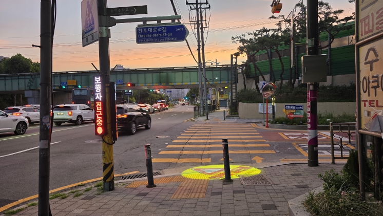 서울 동대문구가 인공지능(AI) 기반 보행자 교통사고 예방 시스템을 주요 교차로와 통학로 등에 설치했다. 우회전 차량과 횡단 보행자 간 사고 위험을 줄이고, 과속과 정지선 위반을 현장에서 즉시 ‘계도’해 운전 습관을 바꾸겠다는 취지다.동대문구는 17일 과학기술정보통신부 공모사업인 ‘스마트빌리지 보급 및 확산 사업’의 일환으로 AI 기반 보행자 안전 시스템(우회전 알리미), 과속 경보 계도 시스템, 정지선 계도 시스템 설치를 완료했다고 밝혔다. 사업은 2024~2026년 3년간 추진되며 총사업비는 52억 4000만 원(국비·구비 7:3 매칭)이다.구가 설치한 ‘우회전 알리미’는 영상 인식 기술로 차량과 보행자, 자전거·킥보드 등을 실시간 감지해 ‘차량 접근 중’ ‘보행자 접근 중’ 같은 정보를 운전자와 보행자에게 동시에 알려준다. 교차로 주변의 LED 전광판, 로고젝터, 스피커 등이 안내 장치로 쓰인다. 구는 구청 앞 교차로 등 31곳에 우회전 알리미를 설치했다.통학로 등에서는 과속을 줄이기 위한 장치도 가동한다. 과속 경보 계도 시스템은 차량 속도 위반 정보를 전광판에 표출해 운전자에게 경각심을 주는 방식으로 전동초 통학로 등 15곳에 설치됐다. 정지선 계도 시스템은 정지선 위반 차량을 실시간으로 감지해 전광판에 알리고 정지선 준수를 유도한다. 청량리청과물시장 앞 교차로 등 18곳에 구축했다.구는 일부 정지선 계도 전광판(5곳)을 활용해 구정 행사와 주요 사업을 알리는 시범 운영도 병행하고 있다. 단순 경보 기능에 그치지 않고, 현장 안내 인프라를 다목적으로 활용해 체감 효과를 높이겠다는 설명이다.이필형 동대문구청장은 “통학로 등 사각지대에서 어린이·어르신 같은 교통약자를 운전자가 미리 인지하도록 돕는 것이 핵심”이라며 “내년에도 AI 기반 스마트 교통안전시설을 확대 설치해 보행자 안전이 체감될 수 있는 환경을 만들겠다”고 했다.