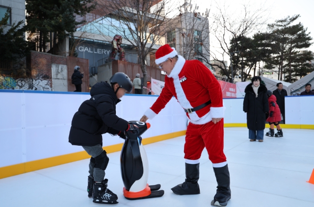 크리스마스 이브인 12월 24일, ‘윈터페스타 엄빠랑 아이스링크’에 산타로 깜짝 변신한 박강수 마포구청장이 등장해 아이들에게 특별한 추억을 선사했다.레드로드 발전소 광장에 설치된 ‘엄빠랑 아이스링크’에서는 12월 24일부터 26일까지 3일간 산타와 함께하는 크리스마스 이벤트가 열리고 있다.이날 일일 산타로 나선 박강수 마포구청장은 아이스링크를 찾은 20여 명의 아이들과 가위바위보 게임 등을 하며 크리스마스의 설렘을 나눴다.산타를 만난 아이들은 연신 환한 웃음을 띠며 크리스마스의 즐거움을 만끽했다.박강수 마포구청장은 “크리스마스 이브에 아이들과 함께 웃으며 특별한 시간을 보낼 수 있어 매우 뜻깊다”라며 “오늘의 웃음이 아이들 마음속에 오래 남는 겨울의 기억이 되길 바라며, 마포구는 계절마다 아이들을 위한 다양한 프로그램을 마련해 나가겠다”라고 말했다.‘윈터페스타 엄빠랑 아이스링크’는 겨울방학을 맞은 아이들이 겨울 스포츠를 즐기며 몸과 마음을 건강하게 키울 수 있도록 마포구가 마련한 프로그램으로, 2월 13일까지 운영될 예정이다.