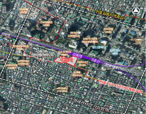 서울시는 12월24일 `도시관리계획(강동구 성내동 179지 일대 역세권 활성화 사업 지구단위계획구역 지정 및 계획) 결정(안)`에 대해 제21차 도시·건축공동위원회를 개최하여 ‘수정가결’했다. 성내동 179번지 일대는 지역주택조합 방식으로 사업 추진 중인 구역으로, 이번 결정으로 최근 통합심의를 완료한 강동역A(성내동 19-1번지 일대) 역세권 활성화사업과 더불어 강동역 일대 변화가 본격화될 전망이며, 사업 추진에도 탄력이 붙을 것으로 기대된다. 이번 결정에 따라 공동주택 총348세대(임대62세대) 및 지역필요시설이 포함된 지하 7층~지상 43층(높이 150m 이하), 연면적 약6만9천㎡ 규모의 건축물이 공급될 전망이다. 대상지는 금번 심의결정에 따라 일반상업지역으로 용도지역 상향되며, 공공기여로 지역필요시설인 공공산후조리원과 서울형 키즈카페 등이 조성될 예정이다. 서울시 정책시설로 조성되는 시립 공공산후조리원은 인근 지역주민이 수혜를 받게 되며, 최근 공공기여 시설의 막대한 운영비로 골머리를 앓아온 자치구 입장에서도 좋은 해법이 될 수 있을 것으로 기대된다. 한편, 대상지 내부로 직접 연결되는 지하철 출입구를 침상형 공개공지와 연계해 개방감을 확보하고, 주변 보행 동선과 단절 없는 입체적 보행 네트워크를 구축할 계획이다. 연접 개발 예정인 ‘강동역A 역세권 활성화사업지’와 연계한 지하 연결통로를 조성해, 강동역에서 강동역A 사업지에 결정된 천호 공영주차장, 빙상장과 수영장 등 생활·체육시설 및 근린생활시설까지 날씨나 교통 여건 등에 영향을 받지 않고 안전하고 쾌적하게 이동할 수 있도록 할 예정이다. 이번 지구단위계획(안) 결정에 따라 향후 건축위원회 심의 등 인허가 절차를 거쳐 2027년 공사에 착수, 2030년 준공을 목표로 사업을 추진할 예정이다. 서울시 관계자는 “이번 계획 결정을 통해 강동역 역세권에 중소형 평형의 공동주택 공급과 함께 서울형 키즈카페와 공공산후조리원, 생활체육시설 등 저출산 고령화시대에 걸맞는 지역필요시설이 조성됨에 따라, 강동역 역세권이 천호성내 생활권의 지역의 핵심지로 거듭날 것으로 기대한다˝고 밝혔다.