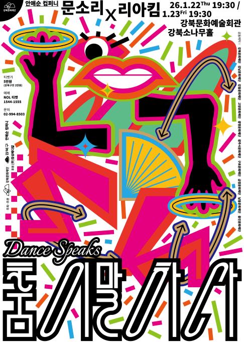 서울 강북문화재단이 안애순 컴퍼니와 손잡고 오는 2026년 1월 22일부터 23일 이틀간 오후 7시 30분 강북문화예술회관 강북소나무홀에서 `춤이 말하다: 문소리x리아킴`을 선보인다.이번 공연은 국립현대무용단 예술감독 재임 당시 `춤이 말하다` 시리즈를 흥행시키며 렉처 퍼포먼스의 지평을 넓힌 안애순의 안무가의 신작이다. 한국 영화계를 대표하는 배우 문소리와 글로벌 K-댄스의 주역인 안무가이자 디렉터 리아킴이 한 무대에 올라, 장르의 경계를 허무는 압도적인 시너지를 예고한다.특히 이번 공연은 강북문화재단이 한국문화예술위원회의 ‘2025년 지역중심 예술과 기업 동반성장 지원사업’과 ㈜정성메디칼의 지원을 받아 제작한 신작으로, 전국 10개 문화재단(강북·강남·강동·고양·광명·광주시·구로·금정·남동·용인)이 힘을 모아 공동 기획했다는 점에서 의미가 깊다.무대 위에서 펼쳐질 두 예술가의 진솔한 고백도 기대를 모은다. 배우 문소리와 안무가 리아킴은 어디에서도 들려주지 않았던 내 인생 속 춤 이야기를 관객들에게 직접 전하며, 이색적인 매력을 선사할 예정이다.티켓 가격은 전석 5만원이며, 강북구민의 경우 2만원에 관람할 수 있다. 예매는 강북문화재단 홈페이지를 통한 놀티켓(NOL 티켓)에서 가능하다.