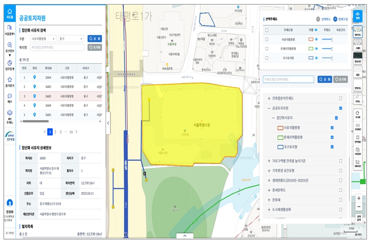 서울시는 도시계획정보를 종합적으로 관리하는 ‘도시계획정보시스템’을 한층 고도화하여 2026년부터 서비스할 예정이라고 밝혔다. 이번 개편은 시민용 서울도시공간포털과 시·구 도시계획 공무원이 사용하는 업무시스템을 동시 개선하는 것이 핵심이다. 시민에게는 도시계획 관련 콘텐츠를 확대해 정보 이해도를 높이고, 행정에는 데이터 기반 분석기능을 강화해 도시계획 수립부터 검토, 관리까지 전 과정을 체계적으로 지원하는 데 의미가 있다. 서울도시공간포털은 시민의 관심사항을 보다 쉽게 확인할 수 있도록 알림서비스를 확대하고 통합검색 기능을 강화해 운영 중이다. 특히 지난 7월 말 개통한 도시계획사업 통합플랫폼 ‘서울플랜+’에 조감도와 관련 고시 정보를 추가로 제공할 계획이다. 서울플랜+ 개통 이후 포털 방문자 수는 약 20% 증가했으며, 하반기 이용자 설문조사에서 84%가 만족한다고 답했다. 시는 이번 콘텐츠 확대로 시민 이용 편의성과 만족도가 한층 높아질 것으로 기대하고 있다. 업무시스템에는 단순 정보관리에서 나아가 합리적인 의사결정을 지원하는 공간분석기능이 본격 도입된다. 서울시 전역의 공공시설 기초데이터를 생활기능과 일상 활동 기준으로 구축해 이용자가 지정한 관심 지역의 시설 분포를 분석할 수 있도록 했다. 이를 통해 공공기여 시설 등에서 발생할 수 있는 수요 대비 공급의 불균형을 조기에 진단하고, 보다 균형 있는 계획 수립이 가능해질 전망이다. 또한 토지대장과 건축물대장 등 행정 기본자료를 활용한 항목별 분석도 가능해져, 사업 타당성 검토는 물론 계획 대안 비교까지 지원하는 등 도시계획 수립 전반에서 실무 활용도가 크게 높아질 것으로 기대된다. 아울러 도시계획 정책 수립에 앞서 필요한 기초현황 조사·분석 기능도 새롭게 추가된다. 분석대상지를 선택하면 토지이용 현황, 건축물 현황, 도시계획 현황 등을 체계적으로 정리한 분석보고서가 자동으로 생성·저장된다. 이에 따라 반복적이고 수작업에 의존하던 사전검토 절차가 표준화되면서 업무속도와 품질이 함께 개선될 것으로 보인다. 이와 함께 서울시 소유 공공토지 자원을 DB로 연계해 전직원이 열람·공유할 수 있도록 시스템을 구축했다. 검색조건을 통해서 시유지의 상세정보와 구역정보 확인이 가능해 공공자산의 전략적 활용은 물론 토지기반 정책의 정합성 제고에도 기여할 것으로 기대된다. 조남준 서울시 도시공간본부장은 “이번 개편을 통해 시민에게는 쉽고 빠른 정보 접근과 신뢰성을 제공하고, 행정에는 공간분석을 기반으로 한 과학적 의사결정 체계를 마련하게 됐다”며, “앞으로도 도시계획 정보시스템을 지속적으로 발전시켜 나가겠다”고 말했다.