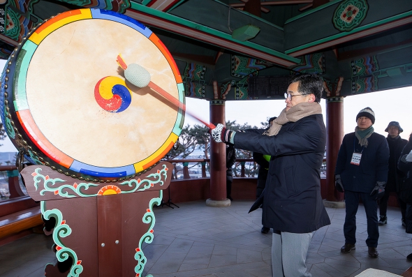 양천구가 병오년 새해 첫날, 목2동 용왕산 일원에서 ‘2026년 해맞이 행사’를 열고 주민과 함께 새해의 희망과 안녕을 기원했다.행사는 천지풍물단의 길놀이 풍물패 공연과 국악 아카펠라 밴드 축하공연을 시작으로 양천의 희망과 미래를 기원하는 대북 타고, 주민과 함께 외치는 해돋이 카운트다운 순으로 진행됐다. 오전 7시 50분경, 해돋이 카운트다운과 함께 새해 첫해가 떠오르자 행사장을 찾은 주민들은 붉게 물든 하늘을 바라보며 저마다의 소망을 기원했다.행사장 곳곳에서는 ▲새해 소원지 쓰기 ▲타로카드 신년 운세 ▲캘리그라피 소망 문구 및 가훈 쓰기 ▲캘린더 만들기 ▲소원 윈드벨 만들기 등 다양한 체험 프로그램도 마련돼 추운 날씨에도 많은 주민들의 발길이 이어졌다.주민들이 작성한 소원지는 오는 2월 정월대보름 행사에서 달집과 함께 태워 한 해의 안녕과 복을 기원할 예정이다.이기재 양천구청장은 “차가운 새벽 공기를 뚫고 용왕산을 찾은 주민 한 분 한 분의 얼굴에서 새해를 향한 기대와 희망을 느낄 수 있었다”며 “용왕산에서 맞은 붉은 해처럼, 2026년이 주민 모두에게 힘차게 도약하는 한 해가 되길 바란다”고 말했다.