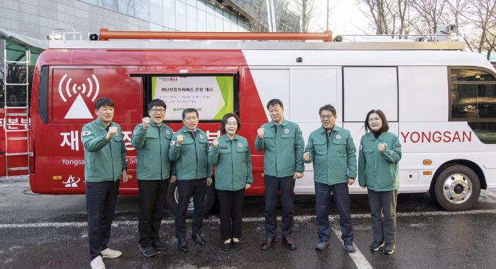 서울 용산구가 올해 처음 ‘재난현장지휘버스’를 도입하고, 지난 13일 운영 개시식을 통해 본격적인 가동에 들어갔다. 이는 재난 유형이 다양·복합화되는 상황에서 재난 발생 초기부터 신속한 현장 판단과 체계적인 대응을 위해 마련됐다.이번 도입한 재난현장지휘버스는 25인승 중형 승합차를 기반으로 특수 개조된 이동형 재난 지휘 차량으로, 재난 발생 시 현장에 즉시 출동해 지휘·통제·상황관리 기능을 수행하는 이동형 통합지원본부로 역할을 한다. 구도심 밀집 지역인 구 특성을 고려해, 기동성과 접근성이 뛰어난 중형버스로 채택했다. 구청 소관부서 직원 5명이 버스를 직접 운전하기 위해 지난해 12월 대형 운전면허를 취득하기도 했다.버스 전면부는 운전석·조수석 및 통신·음향시설을 조종할 수 있는 운영석으로 구성했다. 중면부는 현장 지휘를 할 수 있도록 회의실로 구성해 구청 6층 재난안전대책본부와 연결해 현장 폐쇄회로티브이(CCTV)로 즉시 상황을 확인·공유하고 유관기관과 영상회의를 진행할 수 있다. 후면부는 유사시 즉각적인 재난 현장 통합지원본부 가동을 위한 운영 물품을 실을 수 있도록 꾸렸다. 외부 지붕에 폐쇄회로티브이(CCTV) 3대를 달고 스피커와 전광판도 설치했다.구 관계자는 “재난 발생 초기부터 대응 방향을 신속히 결정하고, 주민 대피 유도 및 현장 통제가 더욱 효과적으로 이루어질 것으로 기대한다”라고 설명했다.재난현장지휘버스는 실제 재난 대응뿐 아니라 ▲재난 대응 합동훈련(재난대응 안전한국훈련, 재난현장 통합지원본부 가동 훈련, 차량 교신 훈련 등) ▲다중운집 인파 관리(세계불꽃축제, 핼러윈데이 등) ▲재난취약지역 안전순찰 ▲안전 홍보 및 교육 등에도 적극 활용할 계획이다. 평시 재난 대응 역량을 강화하고, 주민이 체감할 수 있는 안전 행정을 실현한다는 방침이다.13일 운영 개시식에는 박희영 용산구청장 등 20여 명이 참석한 가운데 ▲경과보고 ▲무사고·안전운행 기원 ▲차량 내·외부 점검 순으로 열렸다. 특히, 점검 시에는 버스와 구청 재난안전대책본부를 연결해 현장 영상 송수신 상태를 확인했다.박희영 용산구청장은 “재난현장지휘버스는 단순한 차량이 아닌, 재난 발생 시 현장을 직접 지휘하는 이동형 지휘 본부”라며 “앞으로도 실전형 훈련과 체계적인 운영을 통해 구민의 생명과 안전을 지키는 데 최선을 다하겠다”라고 말했다.
