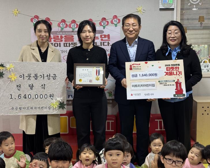 아트리치 어린이집은 지난 14일 저소득층을 지원하는 `2026 희망온돌 따뜻한 겨울나기` 사업에 성금 164만원을 석관동주민센터에 기부하며, 지역사회 나눔을 실천했다.이번 성금은 어린이집이 매년 지역주민을 대상으로 진행하는 나눔 행사 수익금으로 마련됐다. 지난해 11월 명화 전시회와 바자회를 열어 얻은 수익금에 어린이집 인근 주민들의 자발적인 기부, 교직원들의 참여를 더했다.아트리치 어린이집은 바자회 수익금 전액을 매년 지역사회에 기부해 오고 있으며, 2024년에는 약 121만원, 2025년에는 약 134만원의 성금을 전달한 바 있다. 이러한 지속적인 나눔 실천 공로를 인정받아 성북구청장 감사장이 수여됐다.아트리치 어린이집 고순자 원장은 “아이들과 함께 준비한 작은 나눔이지만, 관내 취약계층 주민들이 따뜻한 겨울을 보내는 데 도움이 되기를 바란다”며 “앞으로도 어린이집이 지역사회와 함께 나눔을 실천할 수 있도록 노력하겠다”고 밝혔다.전영훈 석관동장은 “매년 꾸준히 나눔을 실천해 주시는 아트리치 어린이집과 교직원, 운영위원회, 그리고 지역주민 여러분께 깊이 감사드린다”며 “기탁해 주신 성금은 도움이 필요한 이웃들에게 소중히 전달하겠다”고 전했다.