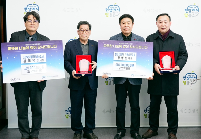 재단법인 성북복지재단(이사장 윤재성)이 성북구민의 복리 증진과 따뜻한 지역공동체 조성에 기여한 기부자에게 감사의 뜻을 전하고, 지역사회에 나눔의 가치를 확산하기 위해 기부금 전달식을 개최했다.이번 전달식의 주인공은 성북동새마을금고(이사장 김재명)와 현대자동차 성북삼선교점(대표 황영선)이다. 두 기관은 각각 500만원씩 총 1,000만 원의 지정기탁금을 성북복지재단에 전달했다. 기탁된 기부금은 지역 내 취약계층 지원과 복지사업 추진을 위해 사용된다.김재명 성북새마을금고 이사장과 황영선 현대자동차 성북삼선교점 대표는 “지역사회와 함께 성장해 온 기관으로서 나눔에 동참하게 되어 뜻깊게 생각한다” 며 “앞으로도 지역복지 발전을 위한 사회공헌 활동을 지속해 나가겠다”고 전했다.윤재성 성북복지재단 이사장은 “지역사회를 위해 따뜻한 나눔에 동참하신 기부자께 깊이 감사드린다”며 “성북복지재단은 앞으로도 민·관 협력을 통해 성북구민의 삶의 질 향상과 지속 가능한 복지공동체 조성에 최선을 다하겠다”고 말했다.성북구 관계자는 “기부자의 소중한 뜻이 지역 곳곳에 잘 전달될 수 있도록 행정도 세심하게 살피고 적극 협력하겠다”고 말했다.성북구와 성북복지재단은 앞으로도 나눔 문화 확산과 따뜻한 복지공동체 조성을 위해 협력할 방침이다.
