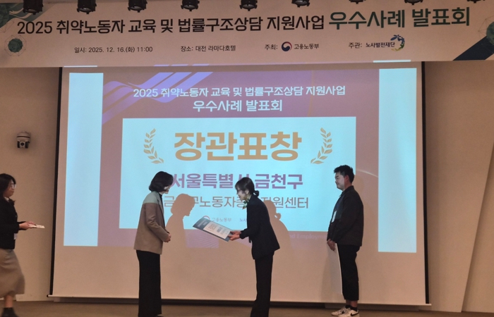 # A씨는 수십 년간 근무한 회사에서 부당하게 징계를 통보받았다. A씨는 금천구노동자종합지원센터를 찾아 자신의 억울함을 토로했다. 이에 노무사가 사안을 검토한 후 억울함을 인정, 구제절차를 수행했다. 결국 징계 사유의 부당성이 인정됐고 징계 철회 및 금전 보상(퇴직금 3억 원)으로 마무리됐다. 금천구는 고용노동부가 법률구조상담 대표 우수사례로 금천구를 선정했다며 금천구노동자종합지원센터가 상담한 구체적인 사례를 소개했다.앞서 고용노동부는 부당해고, 보복성 징계, 근무지 강제 변경 등 취약노동자의 권리 침해 사례 해결 과정과 구제 성과를 기준으로 ‘2025년 노동약자 교육 및 법률구조상담 지원사업’에 대한 평가를 진행했다. 그 결과 전국 지자체 중 금천구와 음성군이 법률구조상담 대표 우수사례로 선정됐다. 금천구가 운영하는 금천구노동자종합지원센터는 지난 2024년 개소한 후 취약계층 노동자, 청년, 학생 등 다양한 주민에게 노동복지 종합서비스를 제공해 노동권익을 향상시키는데 매진하고 있다.특히 노동상담, 권리구제 서비스 등을 수행, 센터에 상주하는 공인노무사 5명이 전문적인 상담을 제공하고 있다. 지난 2025년에는 280회, 852건의 노무상담을 진행했다.이 가운데 3건의 사례가 우수사례로 좋은 평가를 받았다. △장기근속 중장년 노동자 부당징계 철회 △노사협의회 근로자위원 보복성 징계해고 구제 △사회초년생 근무지 강제 변경 및 사실상 해고 사건 해결 등이다.이 과정에서 금천구노동자종합지원센터의 권리구제 상담체계 구축, 공인노무사 연계, 노동위원회 대응 지원 등 노동약자 보호를 위한 지속적 행정 지원 노력이 높은 평가를 받았다고 구는 설명했다.우수사례 발표는 지난 2025년 12월 16일 고용노동행정 우수사례 발표회에서 진행됐다. 또한 고용노동부가 발간하는 ‘2025년 노동약자 교육 및 법률구조상담 지원사업 사례집’에 대표 사례로도 수록됐다.유성훈 금천구청장은 “이번 수상은 노동약자를 위한 금천구의 노력이 인정받은 의미 있는 성과”라며 “어려움에 처한 노동자들이 지역에서 쉽게 도움을 받을 수 있도록 상담과 지원체계를 더욱 강화하겠다”라고 밝혔다.자세한 사항은 금천구청 일자리청년과로 문의하면 안내받을 수 있다.