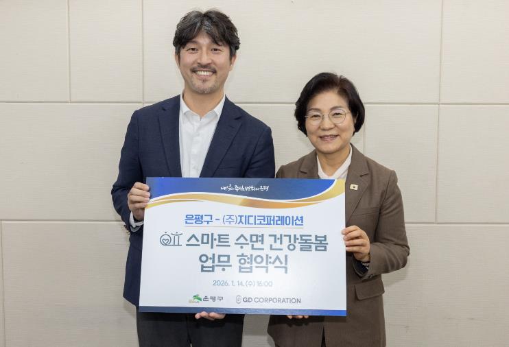서울 은평구는 지난 14일 ㈜지디코퍼레이션과 ‘스마트 수면 건강돌봄 업무협약’을 체결했다고 밝혔다.이번 협약은 돌봄통합법 시행을 앞두고 스마트 수면 관리 기술을 활용해 통합돌봄 대상자의 건강 상태를 보다 체계적으로 관리하고, 예방 중심의 건강돌봄 지원을 활성화하기 위해 추진됐다.협약식에는 은평구청장을 비롯해 돌봄복지국장, 통합돌봄과장 등 구 관계자와 ㈜지디코퍼레이션 대표, 수면기술연구소장 등 업체 관계자들이 참석했다.협약에 따라 양 기관은 ▲스마트 수면 관리 기술을 활용한 건강돌봄 사업 발굴 ▲지역 내 1인 가구 등 돌봄이 필요한 대상자에 대한 수면 기반 건강관리 지원 ▲사업 추진을 위한 상호 협력체계 구축 등에 나서기로 했다. ㈜지디코퍼레이션(대표 김정성)은 2019년 설립된 IoT 기반 슬립테크 전문 중소기업으로, 관련 특허 기술을 바탕으로 수면 정보를 활용한 건강 관리 기술을 개발하고 있다.은평구는 이번 협약을 계기로 통합돌봄 정책과 스마트 기술을 연계한 맞춤형 건강돌봄 지원을 확대해 나갈 계획이다.김미경 은평구청장은 “수면은 건강과 삶의 질을 좌우하는 중요한 요소”라며 “이번 협약을 통해 스마트 기술을 활용한 선제적 건강돌봄 체계를 구축하고, 구민이 체감할 수 있는 돌봄 지원을 지속적으로 확대해 나가겠다”고 밝혔다.