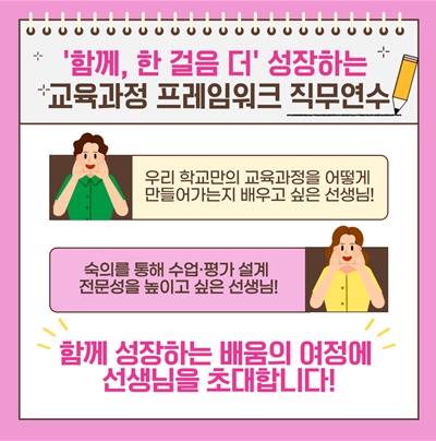 서울특별시교육청은 1월 21일부터 23일까지, 숙명여자대학교에서 서울특별시교육청 소속 초·중·특수학교 교원을 대상으로 `동계 혁신미래교육 아카데미` 직무연수를 운영한다. 이번 연수는 지난해 8월에 실시한`하계 혁신미래교육 아카데미`에 이어‘교육과정 프레임워크’를 활용하여 혁신미래학교의 교육과정 공동 설계‧수업‧평가 혁신의 과정을 보편적으로 적용하고 확대할 수 있도록‘참여형’으로 설계된 것이 특징이다. 또한, 연수 신청에서부터 학교별로 3~4명이 함께 신청하도록 하여 교육과정‧수업‧평가 혁신을 위한 학교공동체 리더십을 세워 나갈 수 있도록 계획했는데, 모집 인원을 훌쩍 넘겨 추첨을 통해 연수 대상자를 최종 선정할 만큼 현장 교원들의 관심이 높았다. 연수 과정은 ‘교육과정 프레임워크’를 이해하고 단위학교 교육과정·수업·평가에 적용할 수 있도록 구성했으며, 혁신미래학교의 숙의 기반 교육과정·수업·평가 설계를 이론 학습과 실습으로 연계해 기획했다. 주요 강의는 다음과 같다. 〇 우리 학교 교육과정 함께 고민하고 설계하기 〇 모두의 성장을 위해 함께 만들어가는 수업·평가 〇 깊이 있는 배움을 위한 단원 수업·평가 설계하기 〇 수업 나눔으로 함께 성장하기 서울시교육청은 이번 직무연수를 통해 교원의 협력적 교육과정 실천 역량을 높이고, 공동체 숙의로 함께 실천하는 교육과정·수업·평가 혁신 문화를 학교 현장에 확산할 수 있을 것으로 기대하고 있다. 정근식 교육감은 “겨울방학에도 교사들의 배움은 멈추지 않는다”며, “학교 변화와 학생 성장을 위해 꾸준히 연구‧실천하고 성찰하는 교사들의 협력적 성장을 위한 노력을 지속 응원하고 지원하겠다.”고 밝혔다.