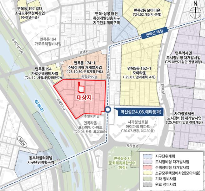 중랑구 ’면목8구역(면목5동 172-1 일대) 주택정비형 재개발사업‘이 작년 12월 5일 서울시 ‘제12차 도시계획위원회 신속통합기획 정비사업 등 수권분과위원회’에서 수정가결된 후, 1월 15일 정비구역으로 지정‧고시됐다.면목8구역은 동부간선도로 지하화 및 상부공원화, 면목선 신설역 조성 등 중랑천 일대 도시환경 변화가 본격화되는 지역이다. 2023년 8월 민간재개발(신속통합기획) 후보지로 선정되어 2024년 12월 신속통합기획을 수립하고, 주민설명회와 주민공람공고 등 정비계획 입안 절차를 거쳐 2025년 9월 서울시에 정비계획 수립 및 정비구역 지정을 요청했다.정비계획에 따르면 중랑천 인접 지역과의 조화를 고려해 수변경관과 주거환경의 쾌적성을 확보하는 방향으로 개발이 추진된다. 제3종일반주거지역은 기존 용도지역을 유지하고, 제2종(7층 이하)일반주거지역은 제3종일반주거지역으로 종상향해 용적률 299.99%, 최고 35층, 총 1,260세대(공공주택 257세대 포함)가 들어설 예정이다. 또한 지역 주민의 보행 편의와 생활환경 개선을 위해 공원과 공공보행통로가 함께 조성된다.류경기 중랑구청장은 “면목8구역이 중랑천과 연계된 친환경 주거단지로 변화하여 지역 주거환경 수준을 한 단계 높일 것으로 기대한다”며, “정비구역 지정 이후에도 사업이 원활하게 추진될 수 있도록 적극적으로 지원하겠다”고 말했다.