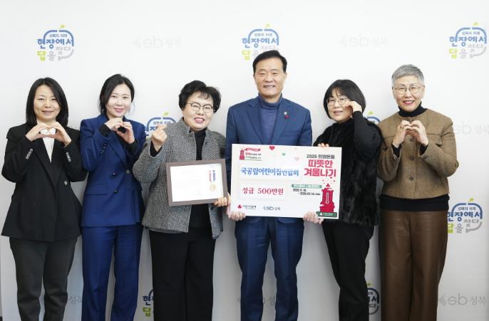 서울 성북구 국공립어린이집연합회가 겨울철 취약계층을 돕기 위한 ‘따뜻한 겨울나기’ 나눔 캠페인에 동참해 성금 500만 원을 성북구청에 전달했다.이번 성금은 연합회 소속 원장 88명 전원이 자발적으로 뜻을 모아 마련한 것으로, 관내 복지 사각지대에 놓인 이웃들을 위한 지원에 사용될 예정이다.성북구 국공립어린이집 원장들은 이번 연합회 차원의 기부에 앞서 각 동 주민센터를 통해 개별적으로 ‘따뜻한 겨울나기’ 성금 기부에 참여해 왔다. 지역 주민과 가까운 곳에서 돌봄 기관을 운영하는 주체로서, 도움이 필요한 이웃에게 온정이 보다 촘촘하게 닿을 수 있도록 나눔을 실천해 온 것이다.21일 연합회 명의로 전달한 성금은 이러한 개별 참여를 넘어, 소속 원장 88명 전원이 다시 뜻을 모아 단체로 추가 기탁한 사례다. 동 단위에서 시작된 자발적 참여가 연합회 차원의 단체 나눔으로 이어지며 지역사회 연대의 폭을 넓혔다는 점에서 의미가 있다.성북구 국공립어린이집연합회의 나눔 활동은 지속적으로 이어지고 있다. 연합회는 지난해에도 영남지역 산불 피해 복구 지원을 위해 성금 500만 원을 성북구청에 전달했으며, 올해 겨울에도 지역 내 이웃을 위한 지원에 참여하고 있다.이승로 성북구청장은 “각 동 주민센터를 통한 개별 기부에 이어 연합회 단체 기부까지 이어지며 지역사회에 긍정적인 영향을 주고 있다”며 “나눔과 연대를 실천해 온 성북구 국공립어린이집연합회에 감사드리며, 앞으로도 구와 어린이집이 협력해 지역사회 나눔 문화를 이어가겠다”고 말했다.