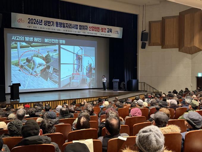 구로구가 이달 28일부터 29일까지 구로구민회관에서 2026년 상반기 동행일자리사업 참여자를 대상으로 ‘산업 안전‧보건 교육’을 실시한다.이번 교육은 동행일자리사업 참여자들이 근무 중 발생할 수 있는 안전사고를 예방하고 건강하고 활기찬 직장 분위기를 조성하기 위해 마련됐다.구는 상반기 동행일자리사업 참여자 총 360명을 대상으로 안전교육과 보건교육을 각각 하루 4시간씩 진행한다.교육 1일 차인 지난 28일에는 한국산업안전보건공단 서울광역본부 김세정 대리가 강사로 나서 △안전의 이해 △근로자의 안전한 직장생활 △안전하고 건강한 직장생활 가이드 △사고 재해사례 및 안전 수칙 등을 중심으로 강의를 진행했다. 이어지는 2일 차 교육에는 구로구청 도시안전과 장초희 주무관이 △겨울철 건강관리 및 재해예방 △근골격계 질환 예방 △감염병관리 및 건강진단 △직무스트레스 및 감정노동 관리 등의 보건 분야 전반에 대해 교육할 예정이다.구로구 관계자는 “현장 업무가 많은 동행일자리 사업 특성상 참여자들의 안전 확보가 최우선”이라며 “앞으로도 정기적인 교육을 통해 사고 없는 안전한 일터를 만드는 데 최선을 다하겠다”고 말했다.