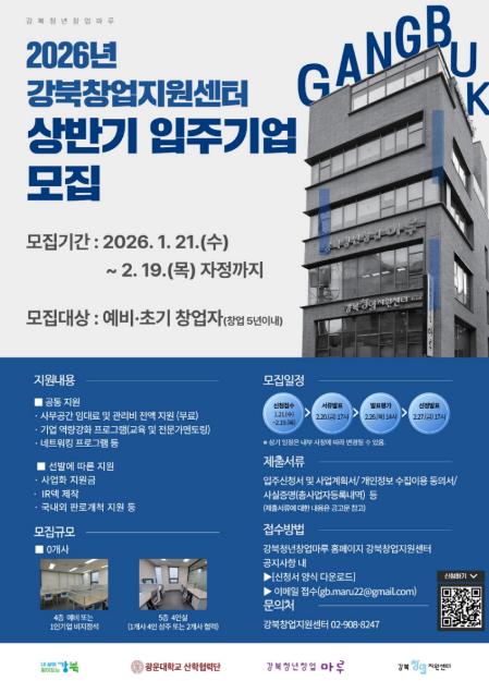 서울 강북구가 운영하는 강북창업지원센터가 지역 기반 예비·초기 창업기업의 든든한 버팀목 역할을 톡톡히 하고 있다.구는 강북창업지원센터 운영을 통해 센터 개관 이후 총 66개 입주기업이 보육 과정을 거쳤으며, 누적 매출 76억 1천만원, 고용 인원 76명을 기록했다고 밝혔다. 또한 정부 지원사업 연계를 통해 총 26억 6천9백만원 규모의 사업화 자금을 확보하는 성과도 거뒀다.강북창업지원센터는 예비창업 단계(Pre-Seed)부터 성장 단계(Seed~Pre-A)까지 단계별 맞춤형 보육 체계를 구축해, 아이디어 구상부터 사업화 및 성장 단계까지 연속적인 창업 프로그램을 제공하고 있다.센터는 이러한 운영 성과를 바탕으로 올해는 ‘지역 기반 실행형 창업 인재 양성’을 핵심 목표로 삼고 단계별 성장 지원 고도화, 제조·제품 중심 실행형 보육 강화, 민관학 협력 네트워크 확대 등을 중점적으로 추진할 계획이다.아울러 창업 상담과 연속형 창업아카데미 운영을 확대하고, 창업경진대회 및 유관기관 협력사업과 연계해 예비창업자가 실제 창업과 입주 보육으로 이어질 수 있도록 지원을 강화할 방침이다.한편, 강북창업지원센터는 오는 19일까지 2026년 상반기 신규 입주기업을 모집한다. 모집 대상은 15세 이상 예비창업자 및 창업 5년 이내 초기 창업기업으로, 심사에서는 성장 가능성과 사업 실행력을 중심으로 평가할 예정이다.선발된 기업에는 공유 및 독립 입주공간을 비롯해 전문가 멘토링, 사업화 지원, 투자유치 연계, 네트워킹 프로그램 등 단계별 맞춤형 창업 지원 서비스가 제공된다. 신청과 관련한 자세한 사항은 강북청년창업마루 홈페이지에서 확인할 수 있다.구 관계자는 “그동안 축적한 창업 지원 운영 성과를 바탕으로 예비·초기 창업자들이 지역 안에서 안정적으로 성장할 수 있는 창업 생태계를 지속적으로 강화해 나가겠다”고 말했다.