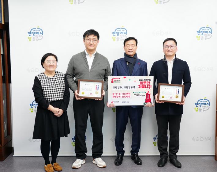 서울 성북구의 청소 관련 대행업체 6곳이 지난 3일 관내 저소득 취약계층을 돕기 위해 ‘2026 희망온돌 따뜻한 겨울나기’ 사업에 성금 1천700만 원을 기부했다.이번 성금은 성북구 생활폐기물 수집·운반 대행업체인 철한정화기업㈜, ㈜태한환경, 강남환경개발㈜와 재활용선별장 위탁업체 명민산업㈜가 각 250만 원씩 총 1천만 원을 기부했으며, 음식물류 폐기물 처리 대행업체 ㈜팜양주가 500만 원, 의류수거함 관리업체 ㈜환영무역이 200만 원을 각각 전달했다.성금 전달식에는 철한정화기업㈜ 유형균 전무, ㈜태한환경 박재환 이사, 강남환경개발㈜ 장좌혁 이사, 명민산업㈜ 이길호 대표, ㈜팜양주 공영호 이사, ㈜환영무역 김광현 대표가 참석했다. 업체 관계자들은 성북구의 공공 업무를 수행하며 발생한 수익의 일부를 지역사회에 환원하고자 기부를 결정했다며, 앞으로도 쾌적한 도시 환경 조성과 구민 편의 증진을 위해 노력하겠다고 밝혔다.이승로 성북구청장은 “평소 깨끗한 성북을 만들기 위해 힘써 주시고, 설 연휴 기간에도 주민 불편을 줄이기 위해 생활폐기물 처리 업무에 종사한 근로자들의 노고에 깊이 감사드린다”며 “전달해 준 성금은 어려운 이웃을 위해 소중히 사용하겠다”고 말했다.성북구는 전달받은 성금을 서울사회복지공동모금회의 ‘2026 희망온돌 따뜻한 겨울나기’ 사업을 통해 관내 저소득 취약계층의 생계비와 의료비 지원 등에 사용할 예정이다.
