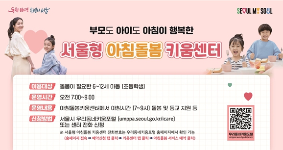 서울시는 부산 화재 사고 이후 초등학생 자녀를 둔 맞벌이 가정의 돌봄 공백을 해소하고 안전사고 예방을 위해 출근 시간부터 퇴근 후 최대 밤 12시까지 이용할 수 있는 ‘야간 연장 돌봄’을 52개소에서 새롭게 시작하고, 이용자 만족도가 높았던 ‘서울형 아침돌봄 키움센터’를 30개소로 확대하여 상시 운영한다. 시는 ▴야간 돌봄 신규 도입 ▴아침 돌봄 확대 ▴키움센터 확충 등을 골자로 한 초등 틈새돌봄 안전망을 구축하여 부모가 일과 육아를 안심하고 병행할 수 있는 환경을 만든다는 계획이다. 먼저, 서울시가 늦은 퇴근이나 긴급 상황으로 돌봄이 필요한 가정을 위해 지난 1월부터 지역아동센터 및 우리동네키움센터 52개소를 통해 ‘야간 연장 돌봄’ 서비스를 본격화했다. 서울시는 기존 오후 8시까지였던 돌봄 시간을 최대 밤 12시까지로 연장했다. 이번 돌봄 서비스는 지역아동센터 49개소와 우리동네키움센터 3개소에서 제공되며, 늦은 시간까지 일하는 부모들의 양육 부담을 크게 완화할 것으로 기대된다. 운영시간은 센터별로 탄력적으로 운영된다. 야간 연장 돌봄서비스를 제공하는 50개소(지역아동센터 47, 우리동네키움센터 3)는 밤 10시까지 운영되고, 지역아동센터 2개소는 밤 12시까지 연장 운영한다.또한, 야간뿐만 아니라 이른 아침 시간대의 돌봄 공백 해소에도 나선다. 서울시는 지난 1월부터 기존 25개소였던 ‘서울형 아침돌봄 키움센터’를 수요가 높은 지역 위주로 5개소 늘려 총 30개소로 확대했다. 운영 시간은 등교 전인 오전 7시부터 9시까지이다. 이번에 추가된 지역은 아침 돌봄 수요가 높은 중랑구, 은평구, 서대문구, 양천구, 동작구 등 총 5개 자치구다. 이번 아침·야간 돌봄 신청은 지역아동센터와 우리동네키움센터에 등록되지 않은 아동이라도 누구나 무료로 이용할 수 있다. 신청은 ‘우리동네키움포털’ 누리집이나 인근 센터 방문 및 전화를 통해 가능하다. 갑작스러운 사정이 생겨 야간 돌봄을 이용하려는 경우에도 이용 시간 2시간 전까지 신청하면 도움을 받을 수 있으며, 상세한 내용은 지역아동센터 서울시지원단 콜센터에서 안내받을 수 있다. 서울시는 2024년 4월부터 10개소에서 시범 운영하던 아침 돌봄을 2025년 전 자치구에 확대 운영하여 작년 한 해 동안 총 17,184명이 이용했고, 우리동네키움센터 아침돌봄 서비스 이용자를 대상으로 한 만족도 조사결과 4점 만점에 평균 3.8점을 기록했다. 2025년 우리동네키움센터 아침돌봄 서비스 만족도 조사는 아침돌봄 서비스 이용자 중 122명이 응답했으며, 온라인 조사 결과 평균 만족도는 3.8점으로 나타났다.서울시는 올해 연말까지 우리동네키움센터 구립 키움센터 4개소를 추가로 확충해, 우리동네키움센터를 총 282개소까지 확대한다. 시는 돌봄 수요가 높은 지역을 중심으로 키움센터를 신규 설치함으로써 학부모들이 체감할 수 있는 초등 돌봄 안전망을 더욱 강화하겠다는 입장이다. 우리동네키움센터는 2026년 1월 말 기준으로 일반형 237개소, 융합형 33개소, 거점형 8개소로 총 278개소의 설치가 확정됐으며, 이 중 275개소가 운영 중이다. 아직 설치 진행 중인 3개소 중 구로구 등 2개소는 연내 운영을 시작하고, 송파구 1개소는 문화재 발굴 조사가 완료되는 대로 공사를 재개하여 2028년 순차적으로 개소할 예정이다. 구립 키움센터는 초등 돌봄 수요와 키움센터 유형별 기능이 원활히 추진되도록 설치 예정지를 선정해, 지역별로 균형 있게 확충해 나갈 예정이다. 이외에도 서울시의 촘촘한 돌봄 정책이 각 자치구의 적극적인 참여와 현장 맞춤형 돌봄 지원으로 실질적인 성과를 내고 있다. 특히 노원구와 강남구는 아이들의 식사 문제를 해결하기 위해 선제적으로 도입된 ‘키움센터 식당’이 학부모들로부터 큰 호응을 얻고 있다. 노원구는 관내 4개 융합형 키움센터(상계두산, 노원, 하계어울림, 상계3·4동)에서 천 원에 한끼 식사를 제공하는 ‘밥상돌봄 아동식당’을 운영 중이다. 2025년에는 이용객이 36,848명을 넘어설 정도로 호응이 높았다. 강남구는 누리봄다함께키움센터(강남7호점)에서 친환경 식재료를 활용한 2,500원의 ‘키움식당’을 운영 중이다. 키움식당을 이용하는 맞벌이 가정 학부모는 “이사를 준비하면서 가장 큰 걱정이었던 아이들의 식사를 키움센터에서 해결할 수 있어 맞벌이 부모로서 안심된다“며 높은 만족감을 전했다. 이와 관련해 오세훈 시장은 23일 오후 2시 30분 동작구에 소재한 ‘우리동네키움센터 동작13호점’을 찾아 방학돌봄 중인 아이들과 종사자들을 만났다. 오 시장은 독서와 관련된 퀴즈를 풀어보는 ‘독서골든벨’ 프로그램을 아이들과 함께하고, 종사자들과 함께 간식을 배부하며 격려와 응원을 전했다. 오세훈 시장이 방문한 우리동네키움센터 동작13호점은 야간 연장 돌봄과 아침 돌봄(서울형 아침돌봄 키움센터)을 모두 운영하는 곳으로, 현재 약 30명의 아이들이 이용하고 있다.