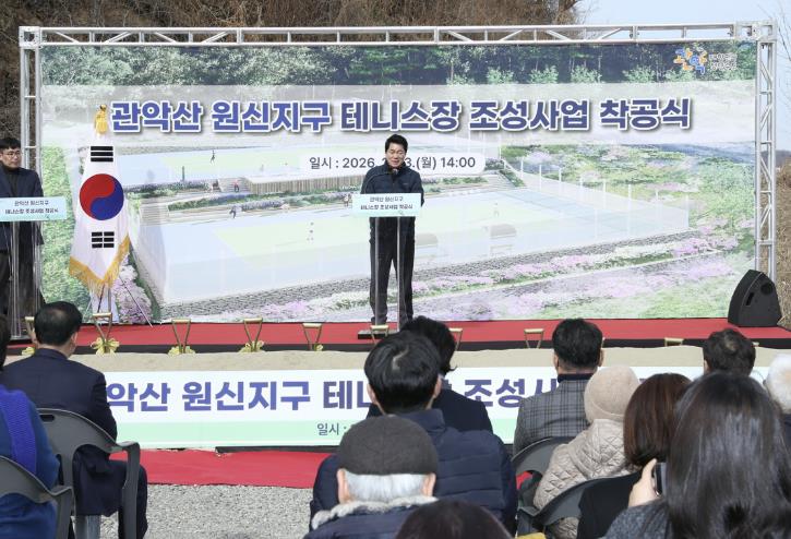 관악구가 지난 23일 관악산 원신지구 내 테니스장 조성을 위한 착공식을 개최하며 관악산공원 24 프로젝트 마무리 여정의 본격적인 출발을 알렸다.이날 행사에는 박준희 관악구청장을 비롯해 시·구의원, 지역 주민 등 100여 명이 참석해 올해 첫 힐링 인프라 착공을 축하했다. 테이프 커팅과 시삽식에 참여한 박 구청장은 “테니스장이 완공되면 운동하러 오셨다가, 정원에서 잠시 쉬기도 하고 이웃과 인사도 나누는 정원형 생활 체육공간을 즐기시게 될 것”이라며 설명했다.착공식은 테니스장을 포함한 공원 조성 사업 경과보고를 시작으로 ▲내빈 축사 ▲테이프 커팅식 및 시삽식 ▲기념촬영 순으로 진행됐다.관악산 원신지구 테니스장 조성 사업은 힐링·정원도시 관악 조성을 위한 역점 사업인 ‘관악산공원 24 프로젝트’의 일환이다. 구는 과거 무단 경작지였던 삼성동 일대 관악산 자락(신림동 산85-19)에 자연과 조화를 이루는 ‘정원형 테니스장’을 조성해 운동 시설과 휴식 공간에 대한 주민 수요를 동시에 해소한다는 방침이다.사업비는 총 21억 원이 투입되며 ▲테니스장 2면(1,539㎡) ▲가든테라스 ▲관리실, 화장실 등 편의시설이 조성된다. 특히 테니스장은 기존의 지형을 살려 계단식으로 배치하고, 시설 중심과 옆의 유휴공간은 계절별 경관을 담아낼 녹지공간으로 조성했다.자연, 체육, 정원문화가 결합해 실속 있는 ‘복합 여가 공간’으로 탈바꿈할 관악산 원신지구 테니스장은 오는 6월 준공을 목표로 공사가 추진될 예정이다.한편, 구는 2022년 낙성대 숲속 공원을 시작으로 관악산공원 24 프로젝트를 추진하며 총 20개의 특화 공원 조성을 완료했다. 올해 구는 지난해 착공한 관악산 난향숲길 지구와 관음사지구의 ‘거점 공원’을 비롯해, 신우지구의 ‘수직 정원’, 약수암지구의 ‘수국원’ 등 특색있는 힐링 정원을 완성해 관악산공원 24 프로젝트를 마무리할 계획이다.박준희 구청장은 “산책로로만 활용되던 공간을 주민이 즐기고, 머물고, 소통하는 일상 속 힐링 인프라로 돌려드리게 되어 감회가 크다”라며 “원신지구 테니스장을 시작으로, 올해도 주민이 건강하고 행복한 일상을 위해 창문을 열면 꽃과 나무가 보이고 걷기만 해도 마음이 편해지는 힐링·정원도시 관악 조성을 계속해서 완수해 나가겠다”라고 말했다.