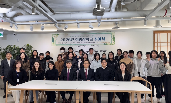 서울 서초구는 25일 저소득 청소년을 위한 『2026년 희망과동행 희망장학금 수여식』을 개최했다고 밝혔다. (사)희망과동행에서 후원하는 이번 수여식은 신학기를 앞둔 청소년 멘티들을 격려하고 올해 희망멘토링 사업 운영 내용을 학생들과 공유하기 위해 마련됐다. 희망멘토링 사업은 청소년들이 학업에 전념할 수 있도록 신학기 희망장학금을 전달하고, 매년 10명의 저소득 청소년들에게 일대일 변호사 멘토를 연결해 다양한 활동을 지원함으로써 청소년들이 건강하게 성장할 수 있도록 돕는 프로그램이다. 이날 수여식을 통해 청소년 멘티 10명에게 1인당 50만원의 희망장학금을 전달해 멘티들의 배움의 기회를 넓히고 1:1 멘토링을 기반으로 진로 탐색과 정서적 지지를 강화하는 등 지속적인 성장 지원을 이어갈 전망이다. 또, 담당 멘토 변호사들과 멘티들이 직접 만나 소통하며 멘토-멘티 관계를 공고히 하는 시간도 마련됐다. 서초구와 (사)희망과동행은 2014년 10월 업무협약(MOU)을 체결한 이후 매년 협력 사업을 추진해왔다. 현재까지 한부모·다문화 가정 등 경제적 이유로 학습 관리와 진로 결정에 어려움을 겪는 청소년 총 120명을 대상으로 변호사 1:1 멘토링, 희망장학금 지원 등을 진행했다. 아울러, 매년 신학기 장학금 수여식과 설 명절 선물 지원을 시작으로 봄·가을 문화산책, 여름 희망캠프 등 멘토 변호사들과 함께하는 프로그램을 운영하며 멘티 학생들의 정서적 지지와 자기효능감 향상에도 힘쓰고 있다. 전성수 서초구청장은 “이번 희망장학금이 청소년들이 학업에 집중하고 진로를 준비하는 데 든든한 디딤돌이 되길 바란다“며, ”앞으로도 청소년들을 위한 다양한 체험형 교육활동과 인성 함양을 위한 프로그램을 지속적으로 확대해 나가겠다”고 말했다.