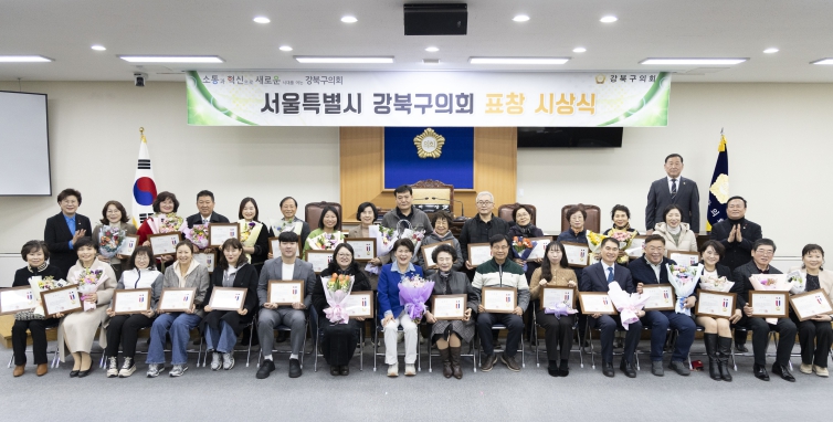 강북구의회는 지난 2월 27일 본회의장에서 평소 헌신적인 봉사와 나눔으로 지역사회 발전에 기여한 모범 구민 35명에게 의장 표창장을 수여했다. 이번 표창 수여식은 보이지 않는 곳에서 성실히 봉사하며 지역사회에 선한 영향력을 미친 구민들에게 감사의 마음을 전하고, 그 공로를 격려하기 위해 마련됐다. 이날 김명희 의장을 비롯해 심재억, 이상수, 최미경 의원은 수상자들에게 직접 표창장과 꽃다발을 전달하며, 자리에 함께한 가족·지인들과 함께 축하와 격려의 기쁨을 나눴다. 김명희 의장은 축사를 통해 “2026년 첫 번째 모범 구민 표창을 수여하게 되어 매우 뜻깊다”며, “오늘 수상하신 여러분은 강북구를 위해 헌신해 오신 ‘숨은 영웅’이자 ‘일꾼’들”이라고 감사를 전했다. 이어 “여러분의 노고 덕분에 강북구가 더욱 따뜻해지고 있다며, 앞으로도 지역사회를 위해 변함없는 열정으로 봉사해 주시길 부탁드린다”고 당부했다.