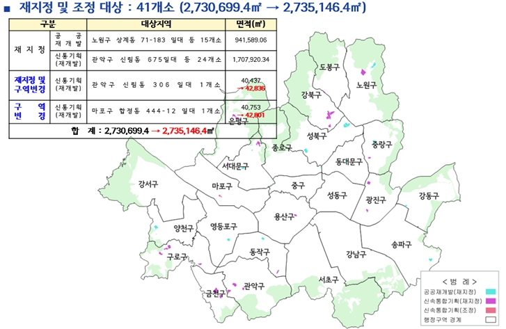 서울시가 신속통합기획 주택재개발 후보지로 선정된 6개 구역(총 0.48㎢)을 신규 토지거래허가구역으로 즉시 지정했다. 후보지 선정과 동시에 투기성 토지거래를 원천 차단하고 정비사업의 투명성을 확보하기 위한 조치다. 서울시는 3월 4일 제3차 도시계획위원회를 거쳐 후보지 선정위원회를 통해 선정된 신통기획 주택재개발 후보지 6곳을 토지거래허가구역으로 신규 지정했다고 밝혔다. 신규 지정 대상은 광진구 1곳, 구로구 2곳, 서대문구 1곳, 은평구 2곳이며, 지정기간은 2026년 3월 17일부터 2027년 4월 3일까지다. 또한, 지정기간이 만료될 예정인 기존 공공재개발 15곳, 신속통합 재개발 25곳 등 총 40곳에 대해서는 투기수요 유입 방지를 위해 2027년 4월 3일까지 재지정했다. 이 중 신속통합기획 주택재개발 구역인 관악구 신림동 306 일대는 구역계가 변경됨에 따라 편입된 토지를 포함하여 토지거래허가구역을 조정(40,437㎡ → 42,836㎡)했다. 아울러 기존 신속통합기획 주택재개발 1곳은 사업구역 결정 경계에 맞춰 토지거래허가구역 경계를 조정했다. 대상지는 마포구 합정동 444-12 일대로, 구역 면적이 40,753㎡에서 42,801㎡로 증가했다. 이 구역의 허가대상 면적 및 지정기간은 기존과 동일하게 유지된다. 서울시는 지정기간 만료 시점인 2027년 1월 28일 전에 재지정 필요성을 검토할 계획이다. 토지거래허가구역으로 지정되면 주거지역 6㎡, 상업지역 15㎡를 초과하는 토지 지분에 대한 소유권이나 지상권 이전 및 설정 계약 시 관할 구청장의 허가를 반드시 받아야 한다. 최진석 서울시 주택실장은 “서울시는 부동산시장의 건전성과 투명성을 최우선 가치로 두고, 토지거래허가구역을 운영하고 있다”며 “앞으로도 실수요 중심의 안정적인 주택 공급과 원활한 정비사업 추진이 병행될 수 있도록 정책적 노력을 지속하겠다.”고 말했다.