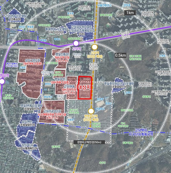 명일한양아파트가 재건축을 통해 공원과 보행환경을 갖춘 1,087세대, 최고 49층 규모의 주거단지로 재탄생한다. 2028년 개통 예정인 지하철 9호선 한영외고역과 연계된 역세권 주거단지로 조성되면서 지역 주거환경이 한층 개선될 전망이다. 서울시는 3월 11일 제3차 도시계획위원회 신속통합기획 수권분과위원회를 개최하고 명일한양아파트 재건축사업 정비구역 지정 및 정비계획 결정·경관심의(안)을 ‘수정가결’ 했다고 밝혔다. 명일한양아파트는 1986년 준공된 노후 공동주택 단지로, 이번 재건축을 통해 기존 540세대에서 공공주택 259세대를 포함한 총 1,087세대 규모로 주택 공급이 확대된다. 특히 역세권 용적률 특례(300%→340% 이하)가 적용되면서 사업성이 개선되고 주택 공급도 확대될 수 있게 됐다. 이번 정비계획은 먼저 결정된 고덕현대아파트 재건축사업과 도시 공간적 조화를 고려하고, 고덕택지 지구단위계획구역 내 재건축 개발과의 연계성을 반영해 수립됐다. 9호선 한영외고역에서 고덕현대아파트 재건축단지로 이어지는 가로 활성화를 위해 어린이공원과 상가를 계획했으며, 두 단지 경계부에는 공공보행통로를 지정해 명일학원가와 지하철 5호선 고덕역을 이용하는 지역 주민의 보행 편의성을 높일 전망이다. 최진석 서울시 주택실장은 “명일한양아파트는 명일·고덕 지역생활권에서 교통과 교육 여건이 우수한 입지”라며 “이번 재건축을 통해 양질의 주택 공급과 함께 공원·보행환경을 갖춘 쾌적한 주거단지를 조성해 지역 주거환경 개선에 기여할 것으로 기대한다”고 말했다.
