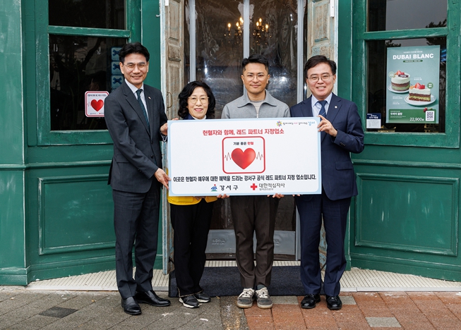 진교훈 서울 강서구청장이 18일 헌혈자에게 할인 등 혜택을 제공하는 ‘레드 파트너’ 지정업소 인증식에 참석했다. 진 구청장은 이날 마곡동 소재 ‘타르데마 베이커리 서울식물원점’을 찾아 김태휘 타르데마 대표에게 ‘레드 파트너’ 지정업소 인증서를 전달했다. 레드 파트너는 헌혈자에 감사의 마음을 전하고 지역 내 생명 나눔 문화를 확산시키기 위해 강서구에서 한국외식업중앙회 강서구지회 등과 추진 중인 민·관 협력사업이다. 헌혈 참여를 독려하는 동시에 지역경제 활성화에도 기여하는 것을 목표로 한다. 헌혈자는 헌혈일 기준 7일 이내 헌혈증서를 레드 파트너 지정업소에 제시할 경우 할인 등 실질적인 혜택을 받을 수 있다. 지정 업소는 주민 생활밀착형 업소들로 현재까지 ▲일반·휴게음식점 12개소 ▲제과점 6개소 ▲이·미용업소 5개소 등 총 23개 업소가 동참의 뜻을 밝혔다. 지정업소에는 인증 스티커가 부착돼 쉽게 식별할 수 있다. 구는 레드 파트너 100개소 인증을 목표로 사회관계망서비스(SNS)와 누리집 등을 통해 홍보를 강화하는 한편, 대한적십자사 서울중앙혈액원과 손잡고 레드 파트너 사업을 헌혈자들에게 안내할 계획이다. 사업 참여를 희망하는 업소는 강서구보건소 의약과로 문의하면 된다. 진교훈 구청장은 “레드 파트너 지정 사업에 뜻을 함께해 주신 소상공인 여러분께 깊이 감사드린다”며 “이번 사업을 통해 혈액 수급 안정화는 물론 지역사회에 생명 나눔 문화가 더욱 확산되길 기대한다”고 말했다.