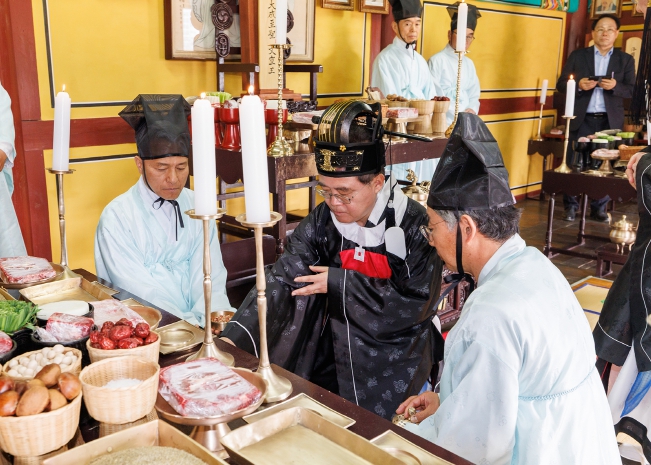진교훈 강서구청장이 24일 서울 유일의 향교인 양천향교 ‘춘기 석전제’에 초헌관으로 참여해 옛 성현들을 기리며 제례를 올렸다. 이날 석전제에는 진교훈 구청장이 초헌관, 오승진 강서경찰서장이 아헌관 등으로 참여했다. 안순복 양천향교 전교를 비롯해 지역 유림, 주민 등 100여 명이 함께해 의미를 더했다. 이날 석전제는 초헌관을 맡은 진 구청장이 공자와 유교 성현들의 위패가 모셔진 대성전에서 향을 피우고 폐백을 올리는 전폐례(奠幣禮)로 시작됐다. 이어 공자, 안자, 증자, 자사, 맹자 등 5성위에 첫 술잔과 축문을 올리는 초헌례(初獻禮), 아헌례, 종헌례, 분헌례, 음복례, 망료례 등의 순으로 진행됐다. 석전제는 5성위, 송조4현, 동국18현 등 옛 성현들의 덕을 기리는 전통 제례 의식이다. 국가무형유산 제85호로 지정돼 있다. 과거에는 지방 수령이 주관해 지내던 제례였으나, 현재는 향교에서 봉행하고 있다. 양천향교는 매년 음력 2월과 8월 초정일(初丁日)에 석전제를 올리며 전통을 계승하고 있다. 진교훈 구청장은 “초헌관으로서 27인의 성현에게 제례를 올리게 돼 매우 뜻깊게 생각한다”며 “석전제를 통해 역사와 전통, 유교의 정신과 가치를 다시 한번 새기는 시간이 되길 바란다”고 말했다.