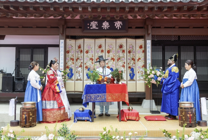 혼인 증가세가 3년 연속 이어지는 가운데, 개성과 실용성을 중시하는 청년들에게 관악구의 ‘전통 혼례식’이 고비용 결혼 문화에 대한 부담을 줄이고 가심비(가격 대비 심리적 만족도)는 높이는 합리적 대안으로 떠오르고 있다.구는 낙성대 공원 내 ‘관악구 전통야외소극장(낙성대로3길 45)’에서 관악문화원 주관으로 전통 혼례식을 매년 운영하고 있다. 2014년부터 이어져 온 전통 혼례는 품격 있는 전통문화에 현대적 감각을 더해 최근 MZ세대 사이에서 불고 있는 ‘힙 트레디션(Hip Tradition) 현상과 궤를 같이한다.지난해에는 총 61쌍의 부부가 전통야외소극장에서 결혼식을 올렸고, 9,100여 명의 하객이 참여해 이색적인 전통 혼례식에 대한 높은 선호를 보였다.전통 혼례식은 ▲교배례(신랑·신부가 서로 맞절하며 부부의 연을 맺는 의식) ▲합근례(술잔을 나누며 하나 됨을 다짐하는 의식) ▲폐백(혼례 후 양가 어른께 인사를 올리는 의식) 등 고유의 절차를 현대적으로 간소화하면서 격식을 갖춰 진행된다. 특히 혼례 이후 펼쳐지는 풍물놀이 등 전통 연희가 잔치 분위기를 자아내 신랑 신부와 하객이 함께 즐기는 ’참여형 웨딩‘의 경험을 선사한다.관악구 전통 혼례식은 관악구민뿐만 아니라 외국인도 사전 예약을 통해 이용할 수 있다. 혼례식은 매년 3월부터 11월까지 운영되며, 4월부터 10월까지는 하루 3회(오전 11시, 오후 2시, 오후 5시), 3월과 11월에는 하루 2회(낮 12시, 오후 3시) 운영된다.박준희 구청장은 “최근 결혼 비용에 대한 부담이 커져 결혼식을 치르지 않거나 간소화된 결혼 방식을 추구하는 젊은 세대가 관악구의 전통 혼례식을 통해 색다르고 의미 있는 인생의 순간을 경험하길 바란다”라며 “유구한 역사와 문화를 품고 있는 도시로서 전통과 현대가 어우러진 다채로운 지역 콘텐츠를 지속적으로 발굴해 매력적인 도시, 다시 찾고 싶은 관악으로 도약해 나가겠다”라고 말했다.