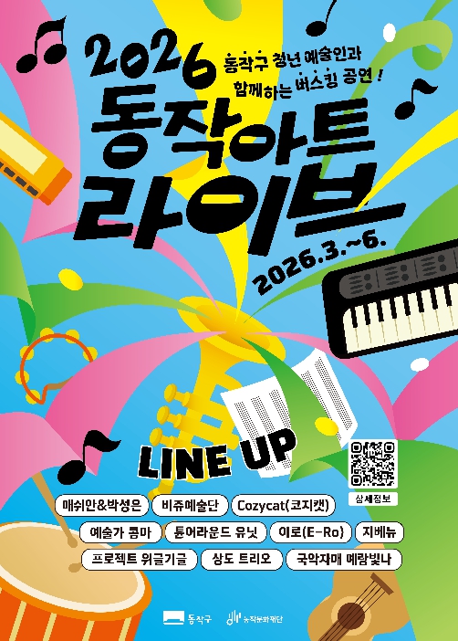 동작구가 관내 신진·청년 예술인을 발굴하고 공연 문화 활성화를 위해 버스킹 공연 ‘동작 아트 라이브’를 운영한다고 밝혔다.구는 공모를 통해 선정한 예술인 10팀과 함께 3월 31일을 시작으로 6월 26일까지 총 40회에 걸쳐 공연을 진행한다.공연은 주 2~3회 상시로 운영되며, 유동인구가 많은 ▲사당만남의공원을 주요 기점으로 ▲이수역 버스킹 공연장 ▲숭실대학교 앞 ▲동래정씨 임당공파 묘역 등 동작구 내 버스킹이 가능한 장소에서 펼쳐진다.특히 올해는 음악 장르 외에도 관객 참여형 공연이 추가로 구성돼 관객들에게 폭넓은 문화 공연을 제공할 예정이다.예술인 라인업은 ▲대중음악(예술가 콤마) ▲재즈(애쉬안&박성은, 튠어라운드유닛, 상도트리오) ▲클래식(비쥬예술단) ▲퓨전국악(이로(E-Ro), 국악자매 예랑빛나) ▲밴드(Cozycat, 지베뉴) ▲퍼포먼스(프로젝트 위글기글) 등으로 구성됐다.구는 버스킹 활성화를 위해 사당만남의공원을 버스킹 성지로 적극 홍보하고, 참여 예술인들에게는 내년도 공모 시 가점을 부여하는 방안도 검토 중이다.한편, 구는 지난 3월 7일 ‘동작 신춘음악회’를 개최하고, 21일 ‘문나이트 댄스 뮤지컬’ 공연을 선보이는 등 저렴한 관람료로 구민들이 폭넓은 문화 생활을 누릴 수 있도록 힘쓰고 있다.박일하 동작구청장은 “지역 예술인이 성장할 수 있는 무대를 넓히는 것이 곧 도시의 문화 경쟁력을 높이는 일”이라며 “앞으로도 신진·청년 예술인에게 안정적인 공연 기회를 제공하고, 구민에게는 수준 높은 공연을 즐길 수 있는 문화 환경을 지속적으로 만들어 가겠다”고 말했다.