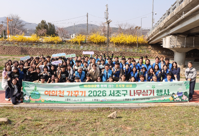서울 서초구가 SCL그룹과 함께 2일 여의천 새원교 인근에서 ‘탄소중립 실천 문화 확산을 위한 나무심기’ 행사를 열었다.이번 행사는 기업과 지자체가 협력해 탄소흡수원인 나무를 통해 탄소중립을 실천하고 지속가능한 환경을 조성하기 위해 마련됐다. 나무를 후원한 SCL그룹은 2022년부터 여의천 일대 나무심기 활동에 동참해 왔으며, 그간 내곡동주민센터부터 신원교까지 약 500m 구간에 식재한 나무가 벚나무 30그루와 조팝나무 8,100그루에 이르는 등 ESG 경영과 탄소중립에 기여해 왔다.이날 나무심기에는 SCL그룹 임직원과 자원봉사자, 학생들이 함께 참여했다. 여의천 새원교 인근 나대지에 벚나무 12그루와 조팝나무 1,000여 그루를 새롭게 식재했다. 이 나무들은 도심 내 미세먼지 저감과 온실가스 흡수에 기여하는 동시에, 주민들에게 쾌적한 생태 산책로와 아름다운 경관을 제공할 것으로 기대된다.참가자들은 나무를 심은 뒤 물주기 활동과 환경 관련 퀴즈 프로그램에도 참여하며 탄소중립과 환경보호의 중요성을 되새기는 시간을 가졌다. 특히, 내곡중학교 학생들이 참여해 직접 흙을 만지고 나무를 심으며 행사의 의미를 더했다. 미래세대인 학생들이 환경 보호의 가치와 생명의 소중함을 체험하는 살아있는 환경 교육의 장이 됐다고 구 관계자는 전했다.전성수 서초구청장은 “지자체와 기업, 그리고 학생들이 함께 탄소중립 실천에 나선 뜻깊은 자리”라며, “앞으로도 기후변화에 선제적으로 대응하고 지속가능한 도시를 만들기 위한 다양한 친환경 정책을 추진해 나가겠다”고 말했다.
