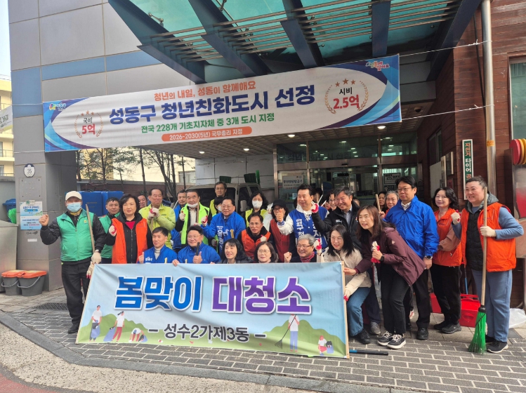 서울 성동구에서는 동별로 주민들과 함께 2026년 봄을 맞아 대청소를 실시하여 마을환경을 정비했다고 밝혔다.먼저 응봉동은 지난 3월 25일 동 직능단체 회원과 직원들이 참여해 대청소를 실시했다. 이번 대청소는 주민들의 생활 편의 향상과 함께 `응봉산 개나리 축제`를 대비해 진행했다.대청소에는 주민자치회, 통장협의회, 바르게살기운동위원회, 자유총연맹, 자율방재단 등 동 직능단체 회원들이 대거 참여하여 응봉산 주변 도로, 공공시설, 공원 등에 방치된 쓰레기와 적치물 등을 수거했다. 특히 주요 축제 장소인 응봉산 진입로와 공원 시설에 대해 집중적인 환경정비가 이루어졌다.이양엽 응봉동장은 “응봉산 개나리 축제를 찾는 방문객들이 즐거운 추억을 쌓고 행복한 시간을 보내시기 위해 함께 힘을 모아 대청소를 실시했다”라며 “대청소에 동참한 직능단체 회원분들과 주민분들에게 감사하다”라고 말했다. 이어 성수1가제1동은 지난 3월 19일 성원중학교 주변 하수도 공사구간 통학로를 중심으로 고압 세척을 활용한 물청소를 선제적으로 진행했다. 공사 이후 잔존 할 수 있는 분진과 토사, 각종 오염물질을 집중 제거하여 학생 보행 안전을 확보하고 통학환경 개선에 힘썼다.이어 3월 25일에는 직원과 주민이 함께 참여하는 ‘봄맞이 대청소’를 실시했다. 겨울철 쌓인 쓰레기를 치우기 위해 30여 명의 주민들이 자율적으로 참여해 성수1가1동 일대 보행로·이면도로·통학로를 2개 구간으로 나눠 청소했다. 또한 무단투기 폐기물을 집중 수거하고, 빗물받이 점검도 병행하는 안전 활동도 펼쳤다.남혜진 성수1가제1동장은 ˝이번 봄맞이 대청소로 봄기운과 더불어 주민들의 마음도 한결 편안해지고 산뜻해 지기 바란다˝라며 ˝참여해 주신 모든 분들께 감사드린다˝라고 말했다.마지막으로 성수2가제3동은 지난 3월 27일 오전 9시 봄맞이 대청소를 실시했다. 이날 행사에는 주민자치회, 통장협의회 등 각 직능단체 회원, 주민센터 직원 등 60여 명이 함께 모여서 관내 쓰레기 무단투기 취약 지역을 2구역으로 나누어 집중적으로 청소하며 마을환경을 정비했다.청소에 참여한 주민들은 길가에 버려진 담배꽁초, 각종 생활쓰레기 적치물 등을 수거하면서 지역 환경 개선에 적극적으로 참여했고, 거리 청소뿐만 아니라 쓰레기 배출 방법을 적극적으로 홍보하면서 뜻깊고 의미 있는 시간을 가졌다.이근희 성수2가제3동장은 “봄맞이 대청소에 참여해 주신 모든 주민분들께 감사드리며, 앞으로 지역주민과 함께하는 다양한 환경정비 활동을 지속적으로 추진해 나가겠다˝라고 말했다.