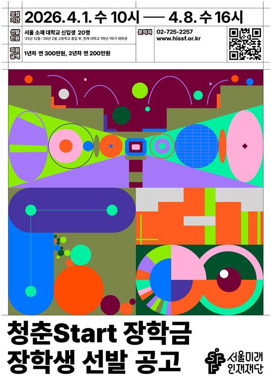 서울미래인재재단이 ㈜두산 임직원 기부금으로 14년째 운영 중인 `청춘Start장학금` 14기 장학생 20명을 모집한다. 서울 소재 대학에 올해 입학한 저소득 신입생을 대상으로 2년간 총 500만 원의 학업장려금을 지급하며, 신청은 4월 8일 16시까지 재단 누리집에서 받는다. `청춘Start장학금`은 재단과 ㈜두산, (재)바보의나눔이 협력해 서울 소재 대학 신입생 중 기초생활수급자, 법정차상위계층, 복지시설 거주 등 일정 조건을 충족하는 자를 선발하여 학업 유지를 전제로 장학금을 지원하는 장학사업이다. 선발된 장학생에게는 1년 차에 연 300만 원, 2년 차에 연 200만 원의 장학금을 지급한다. 자세한 지원 조건은 대한민국 국적자이면서 서울 소재 4년제 대학 또는 전문(전공)대학의 정규학기 학부 신입생인 자(※단, 2025년 12월~2026년 2월 고등학교 졸업 후, 현재 대학교 1학년 1학기 재학생이어야 함), 기초생활수급자·법정차상위계층·복지시설 거주(이력)자 중 하나에 해당해야 한다. 복지시설은 보육원, 쉼터, 그룹홈 등을 포함한다. 장학생 심사는 서류심사, 대면 면접심사, 장학생 선정위원회 최종심의 3단계로 진행하며, 4월 중 심사를 거쳐 5월 초에 최종 합격자를 발표할 예정이다. 면접 대상자는 4월 20일 발표 예정이며, 대면 면접은 4월 25일에 실시한다. 재단은 2013년부터 ㈜두산 임직원의 기부금과 (재)바보의나눔의 지원으로 장학사업을 운영해 왔으며, 지난해까지 누적 약 12억 4천7백만 원을 지원했다. 올해는 기존 13기 장학생과 신규 14기 장학생을 합해 1억 원을 지원할 방침이다. 장학생에게는 장학금 외에도 기부기관 ㈜두산 임직원과 함께하는 봉사활동, 북멘토링 등 프로그램과 장학생 간 교류 기회가 주어진다. 장학금은 재단 누리집에서 온라인으로 신청할 수 있으며, 세부 내용은 누리집 공고문을 확인하거나 재단 대표전화로 문의하면 된다. 남성욱 서울미래인재재단 이사장은 “민간기업의 기부금으로 오랜 기간 이어지고 있어 더욱 뜻깊은 장학사업”이라며, “새로운 환경에서 시작하는 중요한 기점에 경제적인 지원과 다양한 기회 제공으로 청춘을 빛내겠다”는 포부를 전했다.