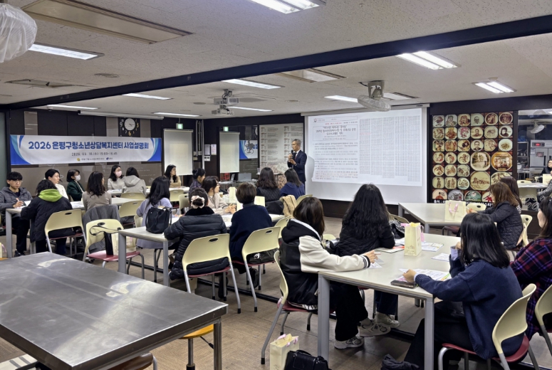 서울 은평구는 지난 3월 18일 은평구청소년상담복지센터에서 관내 초·중·고등학교 교사를 대상으로 ‘2026년 사업설명회’를 개최했다고 밝혔다.이번 설명회에는 41개교 교사 53명이 참석했으며, 학교 현장에서 추진되는 청소년 상담·지원 사업에 대한 이해를 높이고 위기청소년 발굴 및 지원을 위한 학교 연계 체계를 강화하기 위해 마련됐다.이날 설명회에서는 ▲청소년 상담사업 ▲위기청소년 예방사업 ▲학교폭력 예방교육 ▲학교고민상담소 ‘따봉’ ▲부모상담 ▲밥한끼 프로젝트 ▲찾아가는 마음지킴이 ▲달북스쿨 ▲진로상담(진담) 등 센터의 주요 사업 전반을 소개했다.특히 위기청소년 조기 발굴과 개입을 위한 상담·사례관리·자원연계 통합 지원체계를 중점적으로 설명했다.또한 개인상담, 집단상담, 심리검사 등 청소년의 심리·정서 안정을 위한 다양한 지원 서비스와 학교 연계 절차를 함께 설명하며 현장 활용도를 높였다.안영춘 은평구청소년상담복지센터장은 “위기청소년을 위한 맞춤형 지원을 지속적으로 확대해 실질적인 도움이 될 수 있도록 노력하겠다”고 말했다.김미경 은평구청장은 “청소년이 안전하고 건강하게 성장할 수 있도록 학교와 지역사회가 긴밀히 협력하는 지원체계를 더욱 강화해 나가겠다”고 밝혔다.